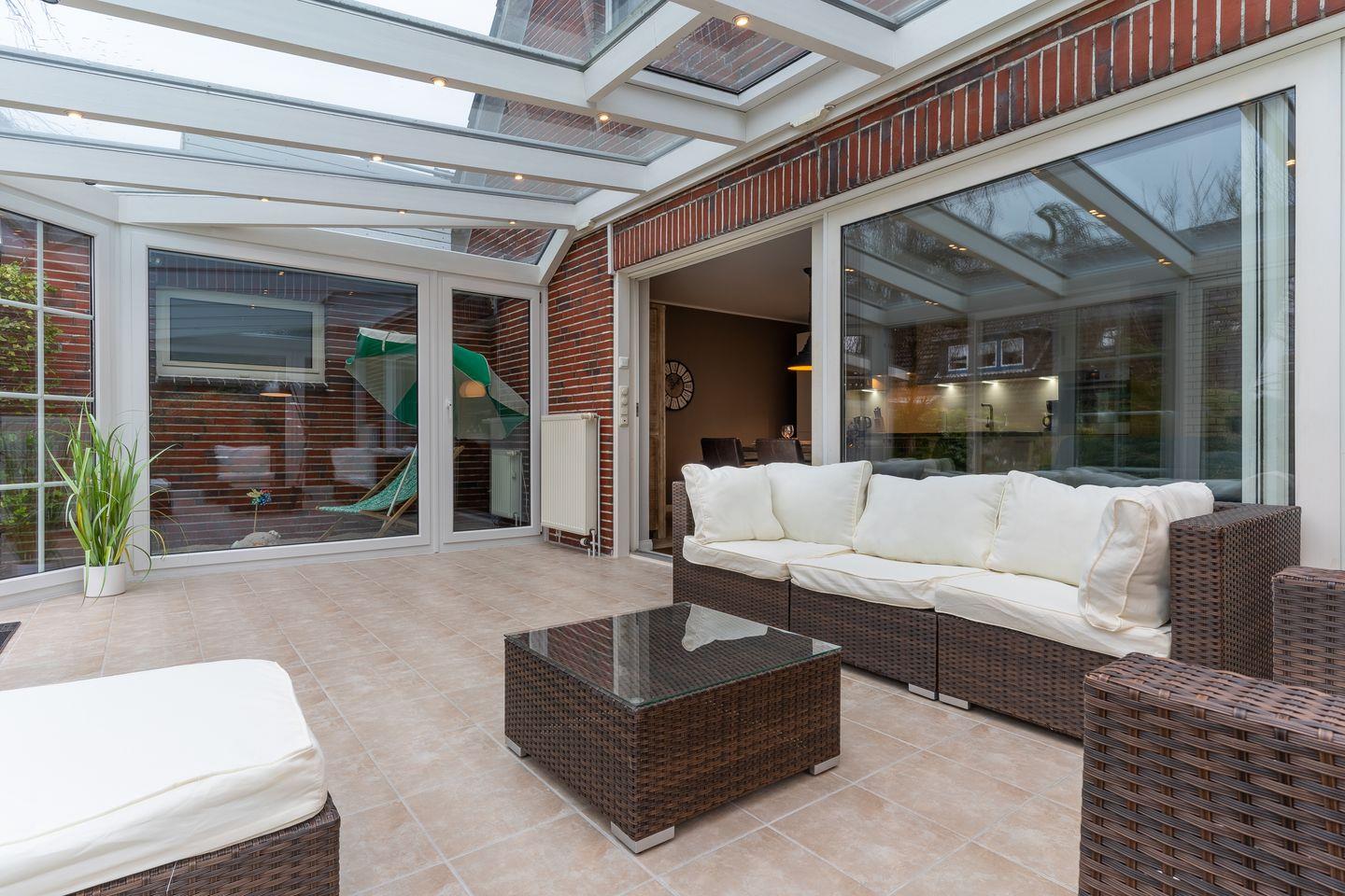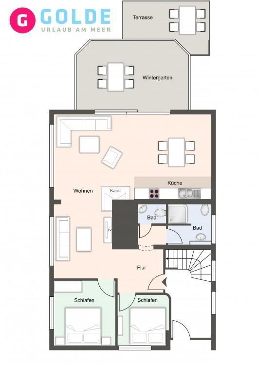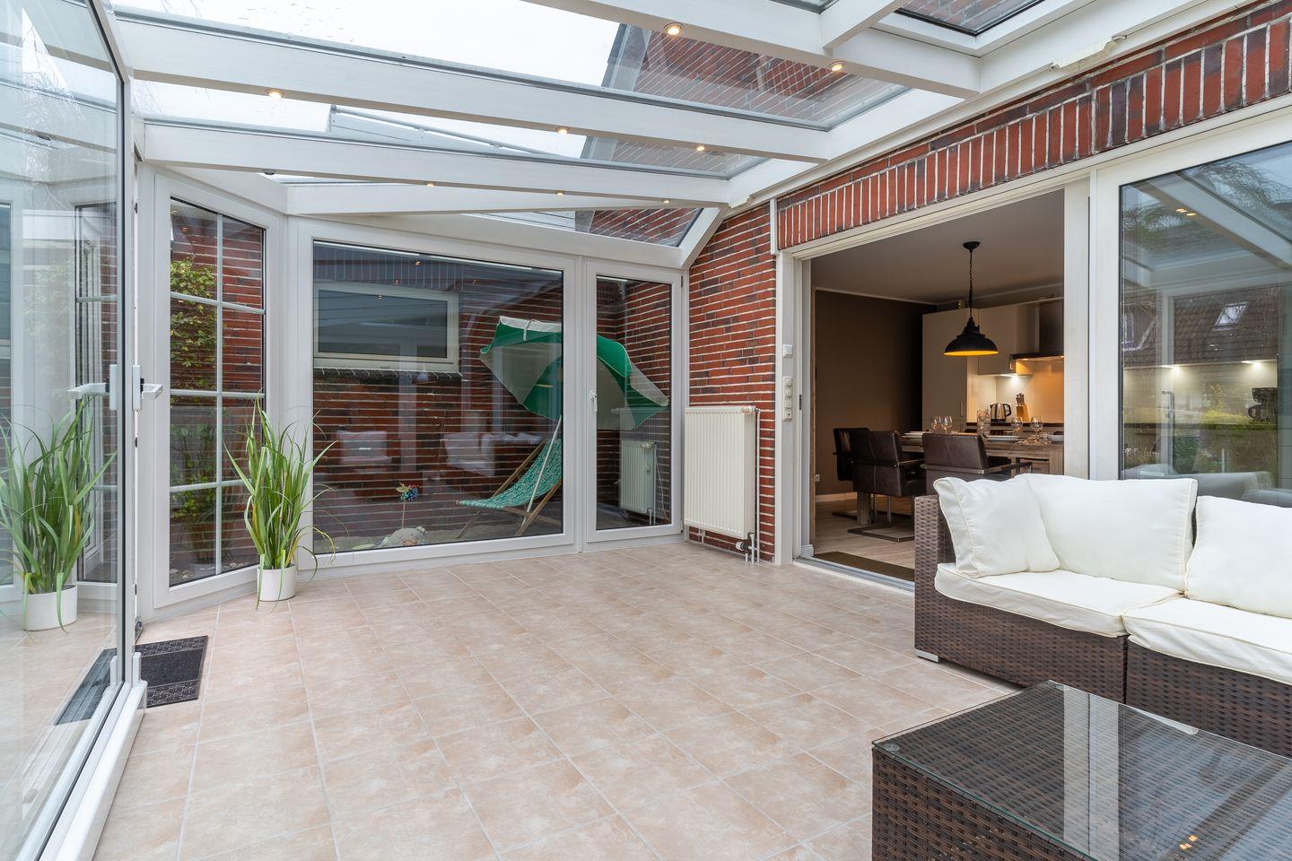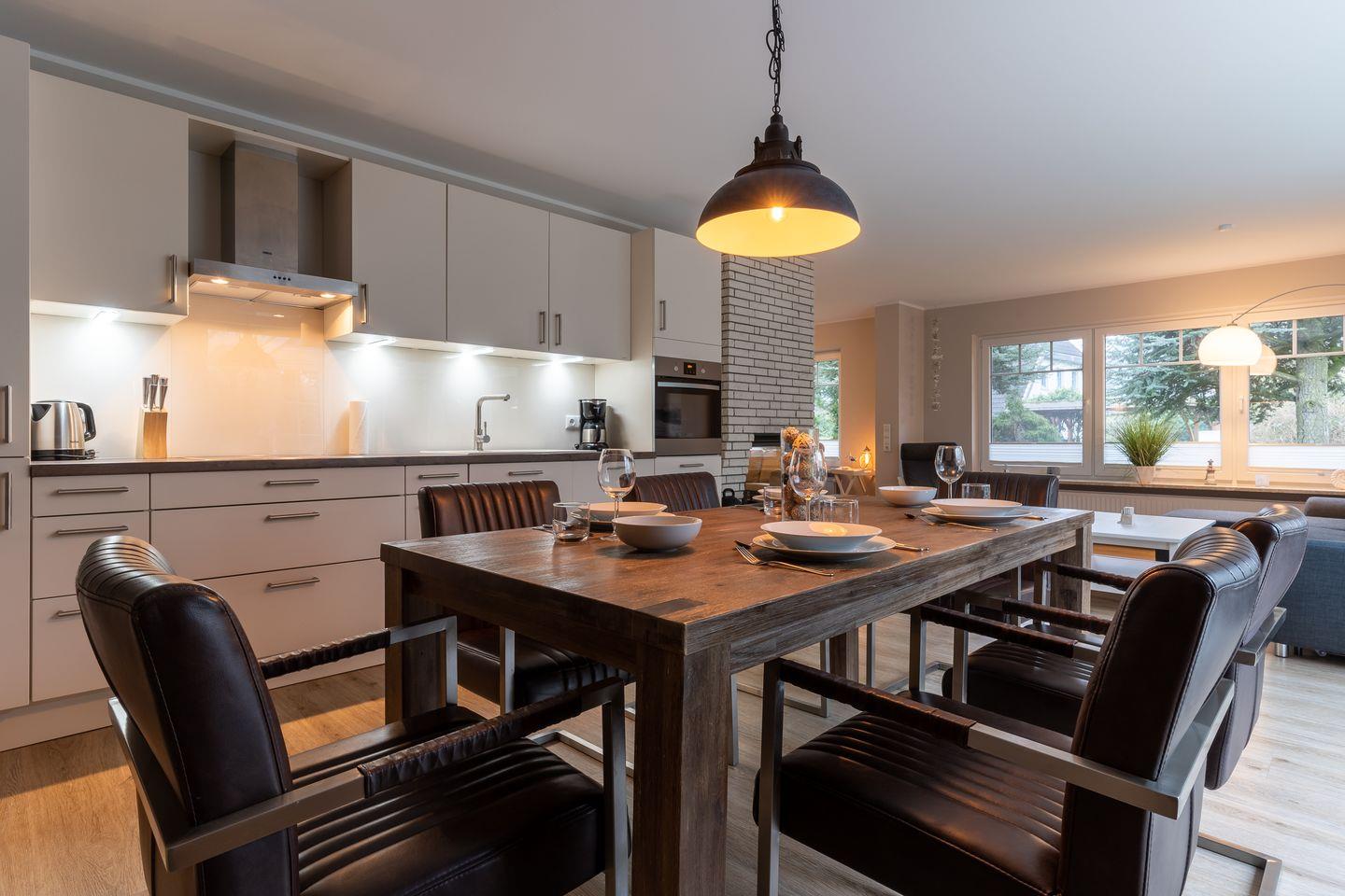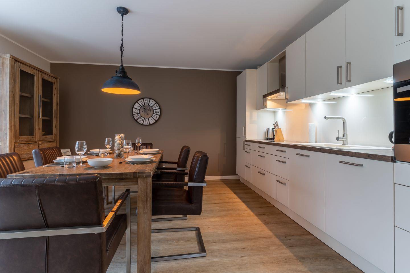 Modern eingerichtetes Appartement Rückenwind in St. Peter-Ording mit Wintergarten, Garten und Kamin für einen erholsamen Urlaub.