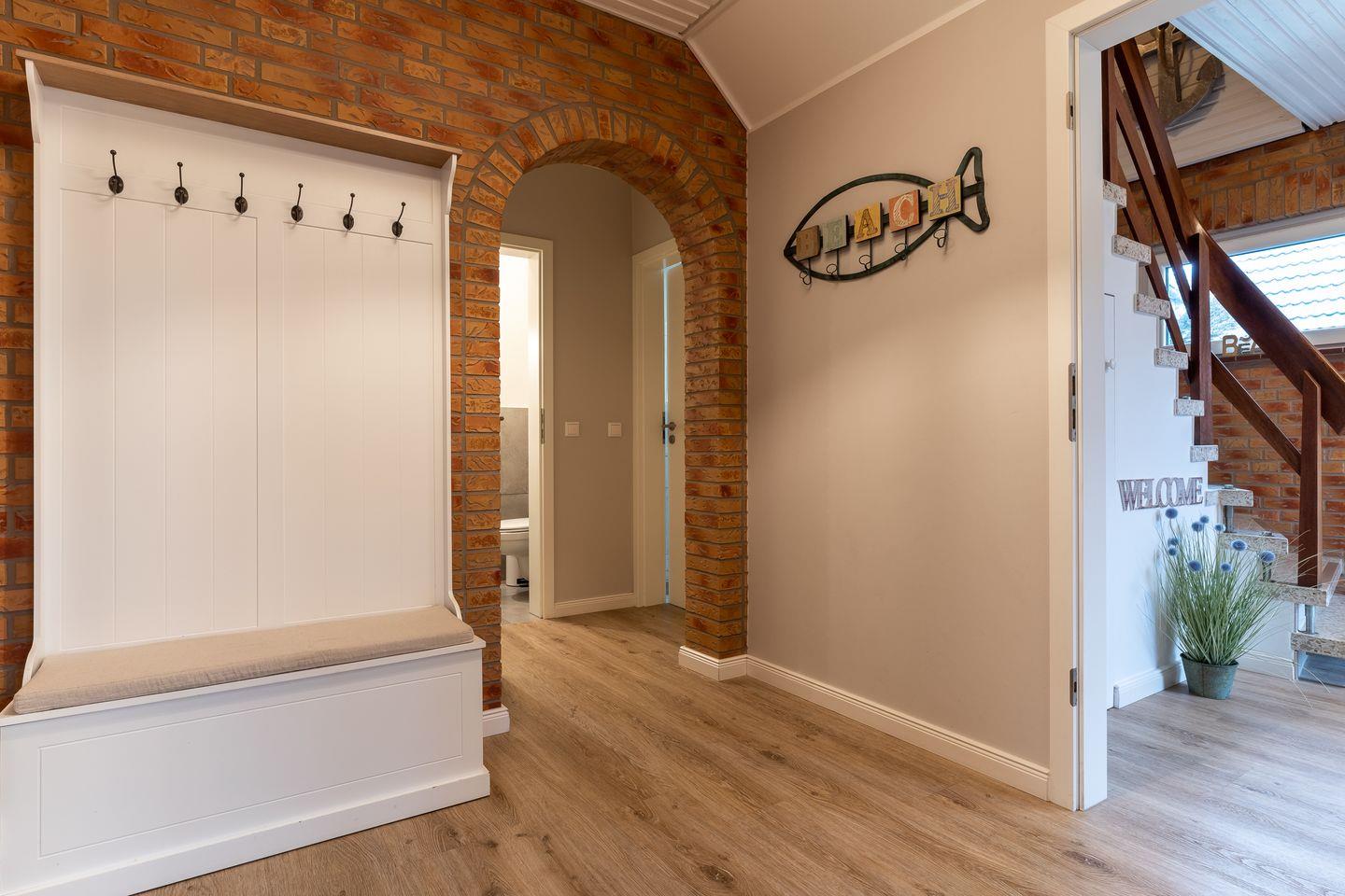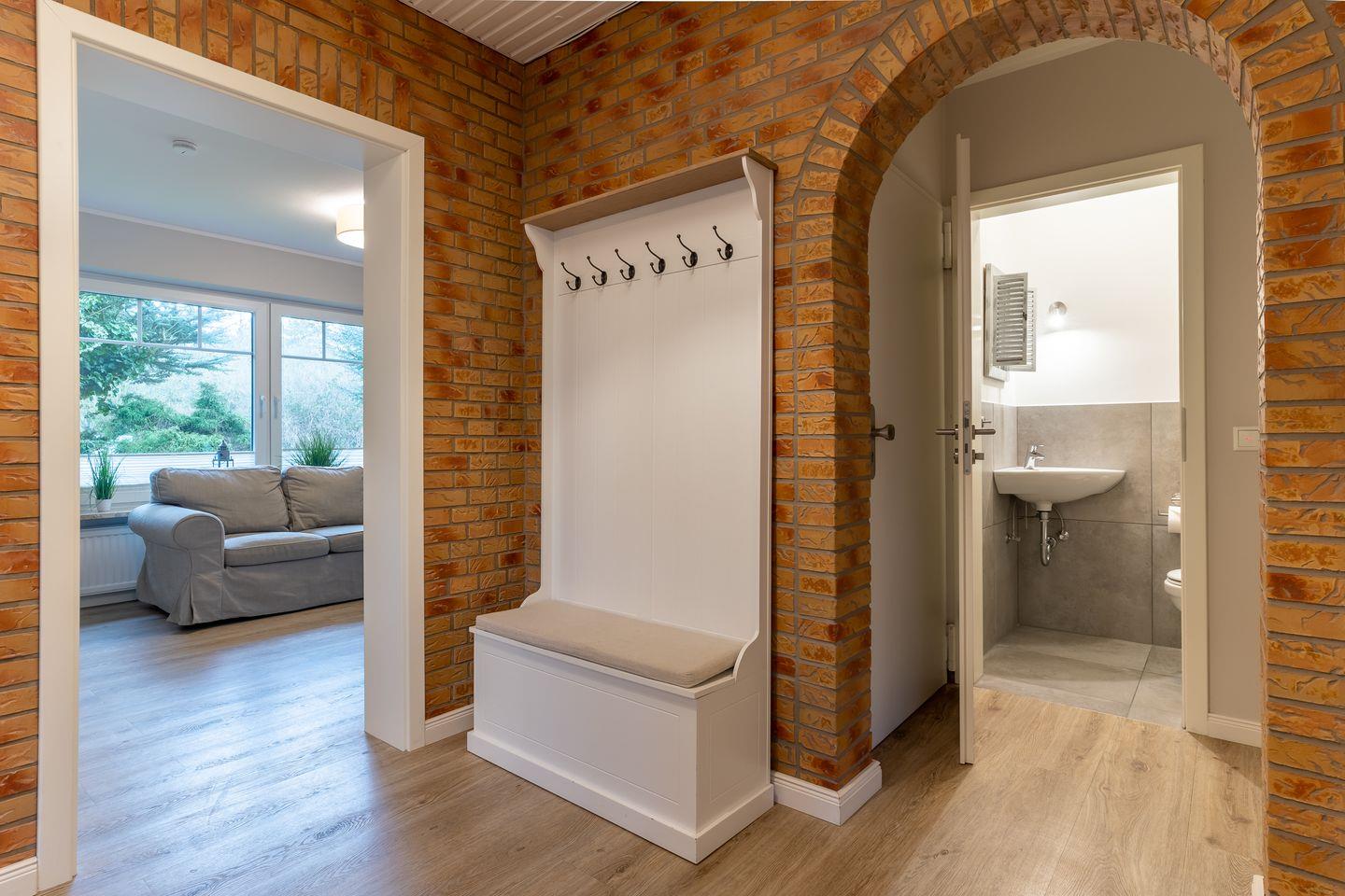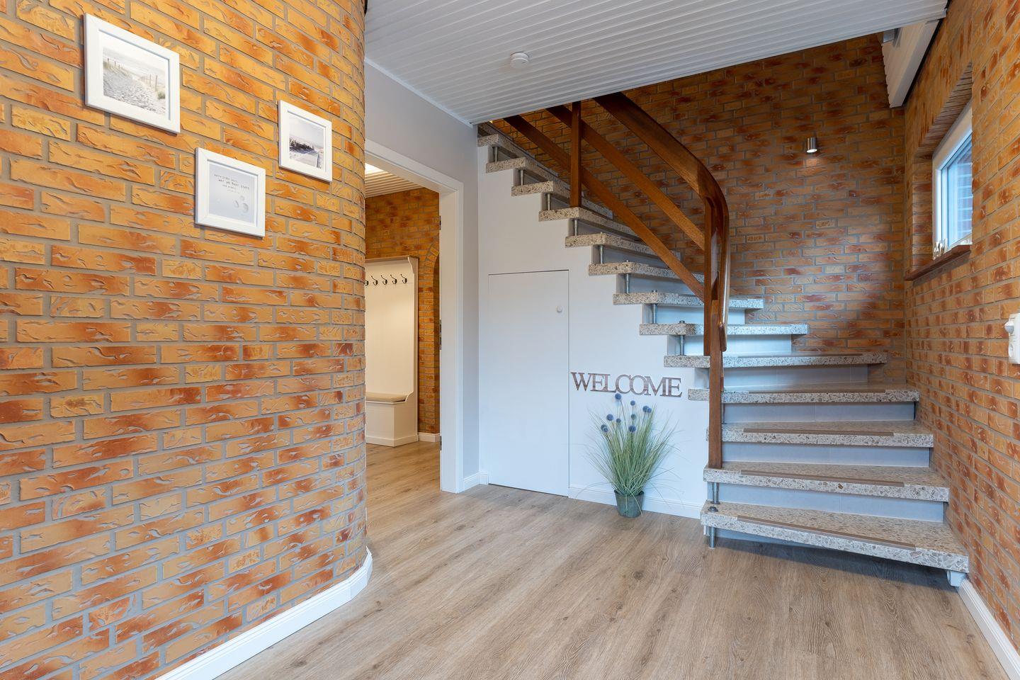 Das App. "Ording" im Ferienhaus Rückenwind verfügt über ca. 100 m² Wohnfläche und bietet Platz für 1-6 Personen. Die Wohnung befindet sich im Erdgeschoss und hier befindet sich der lichtdurchflutete und sehr großzügige Wohnraum mit TV, Kamin und einem stilvollen Essbereich, sowie einer modernen Wohnküche. Die Wohnräume sind mit neuen und modernen Möbeln ausgestattet. An den Wohnbereich schließen sich ein Flur mit Garderobe, und ein Duschbad, sowie ein Gäste WC an.