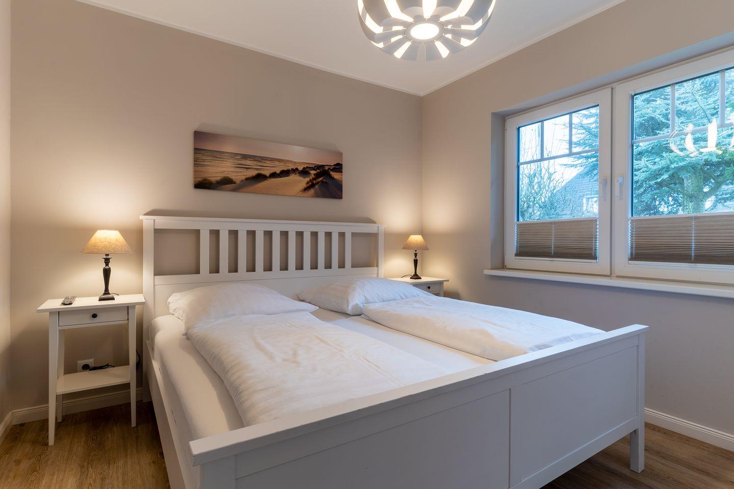 Die beiden Schlafzimmer sind jeweils mit einem Doppelbett ausgestattet (1,80 x 2,00 und 1,40 x 2,00 m) und die Kleiderschränke gewähren Ihnen hinreichend Ablageflächen. Zusätzlich gibt es im Wohnzimmer ein gemütliches Schlafsofa für 2 Personen. Darüber hinaus befindet sich am Wohnzimmer ein großer Wintergarten und bringt Sie sofort in Urlaubsstimmung.