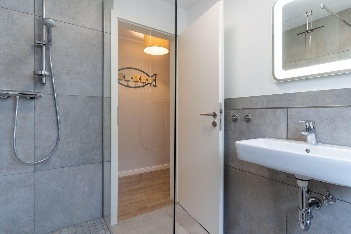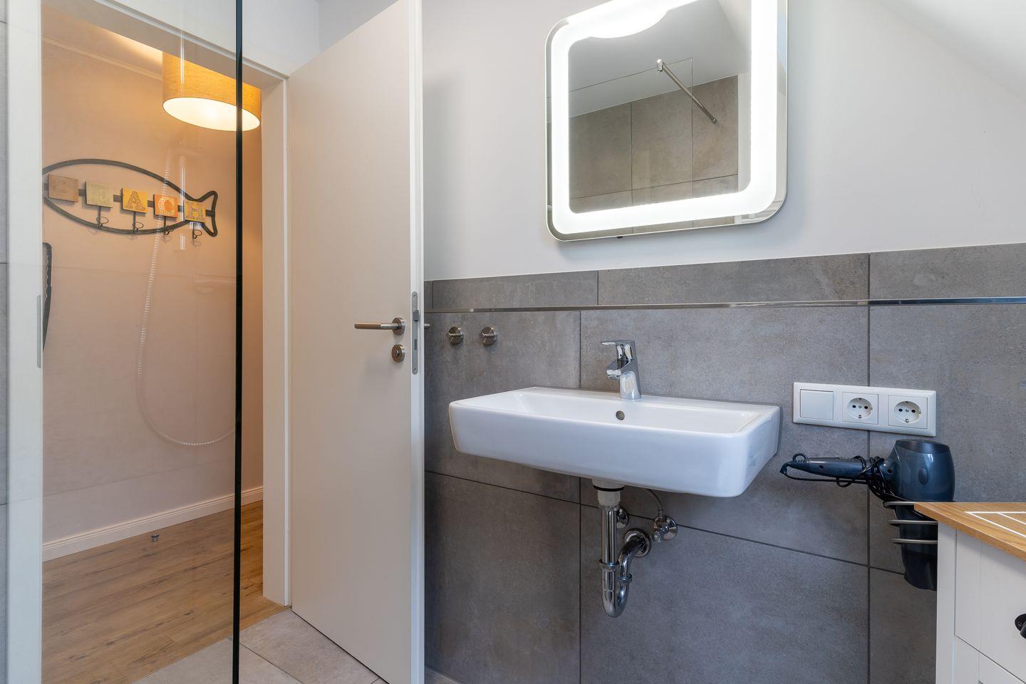 Charmantes Appartement mit moderner Ausstattung und großer Dachterrasse in St. Peter-Ording - Bad für erholsamen Urlaub.