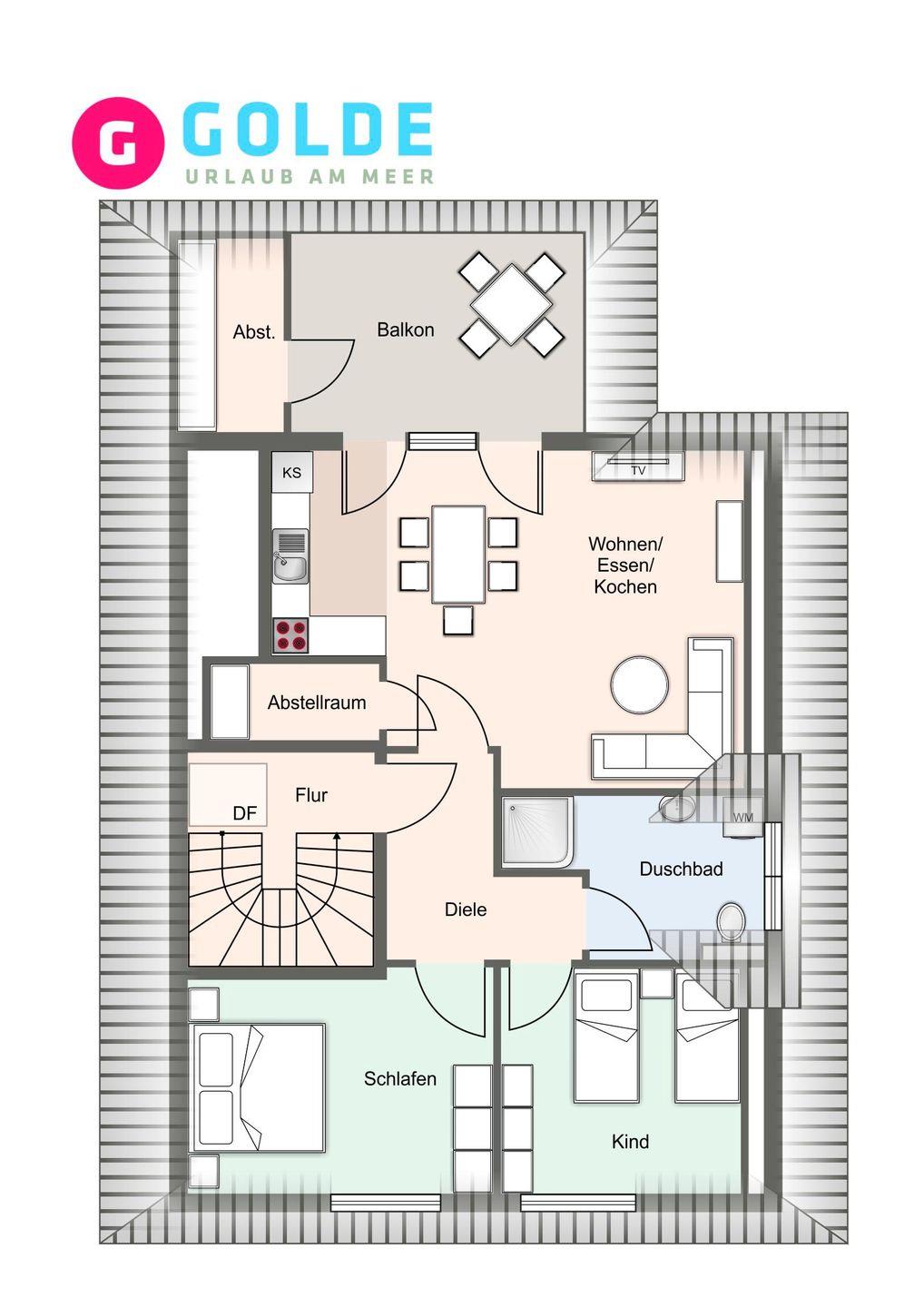 Ein Traumappartement in SPO! Das lichtdurchflutete Appartement im Obergeschoss mit ca. 64 m² Wohnfläche wurde mit exklusiven Möbeln eingerichtet und ermöglicht Ihnen einen traumhaften Urlaub in St. Peter-Ording / OT Bad. Es bietet Platz für 1 - 4 Personen.