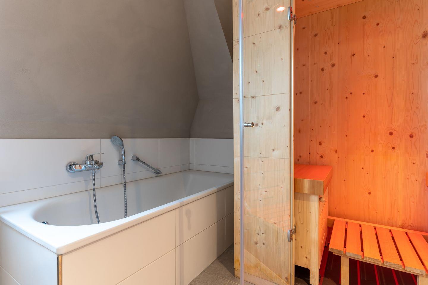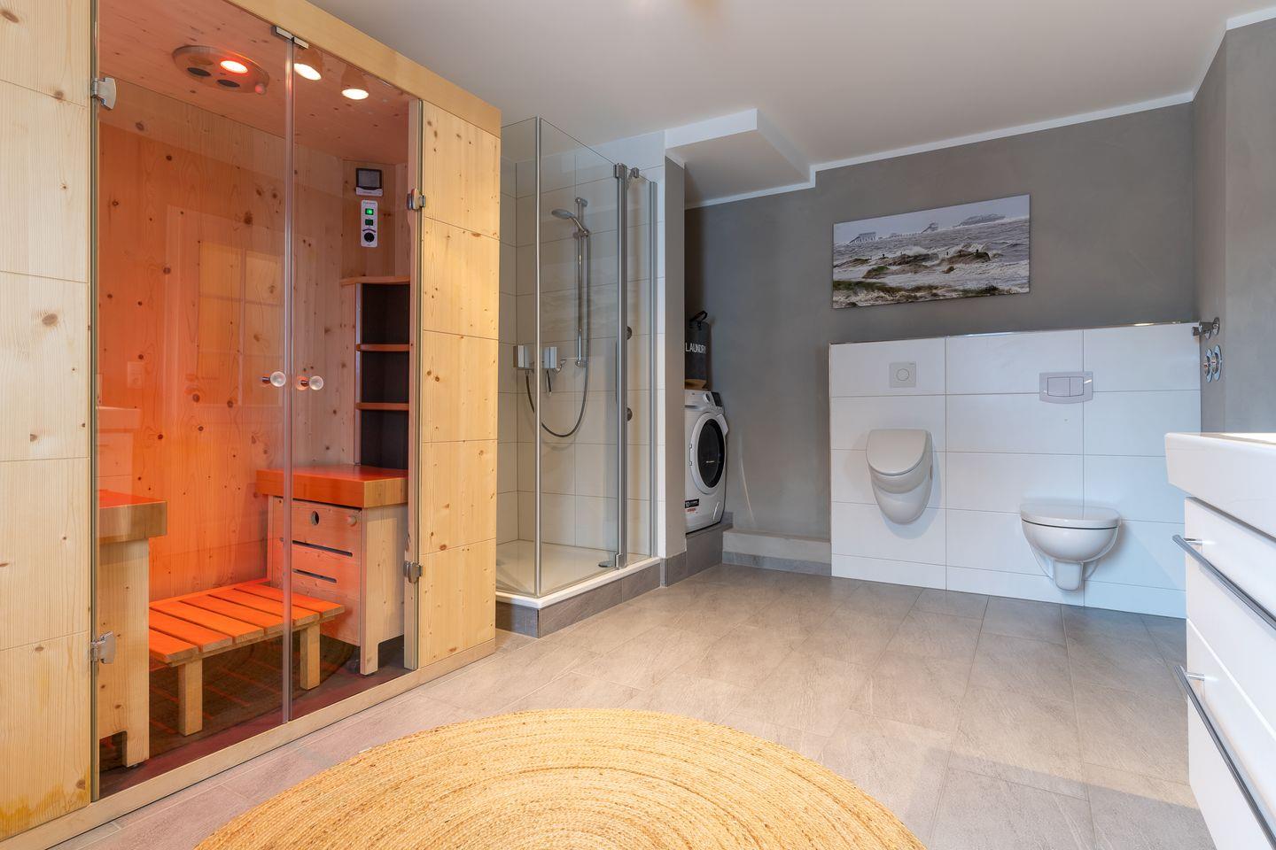 Die beiden Schlafzimmer, mit jeweils einem Boxspring-Doppelbett sind ebenfalls mit TV ausgestattet. Ein hochwertiges Schranksystem gewährt Ihnen hinreichend Ablageflächen. Darüber hinaus befindet sich im Appartement ein weiteres geräumiges Vollbad, das mit Regendusche, Badewanne, Urinal und einer Infrarot-Sauna ausgestattet ist.