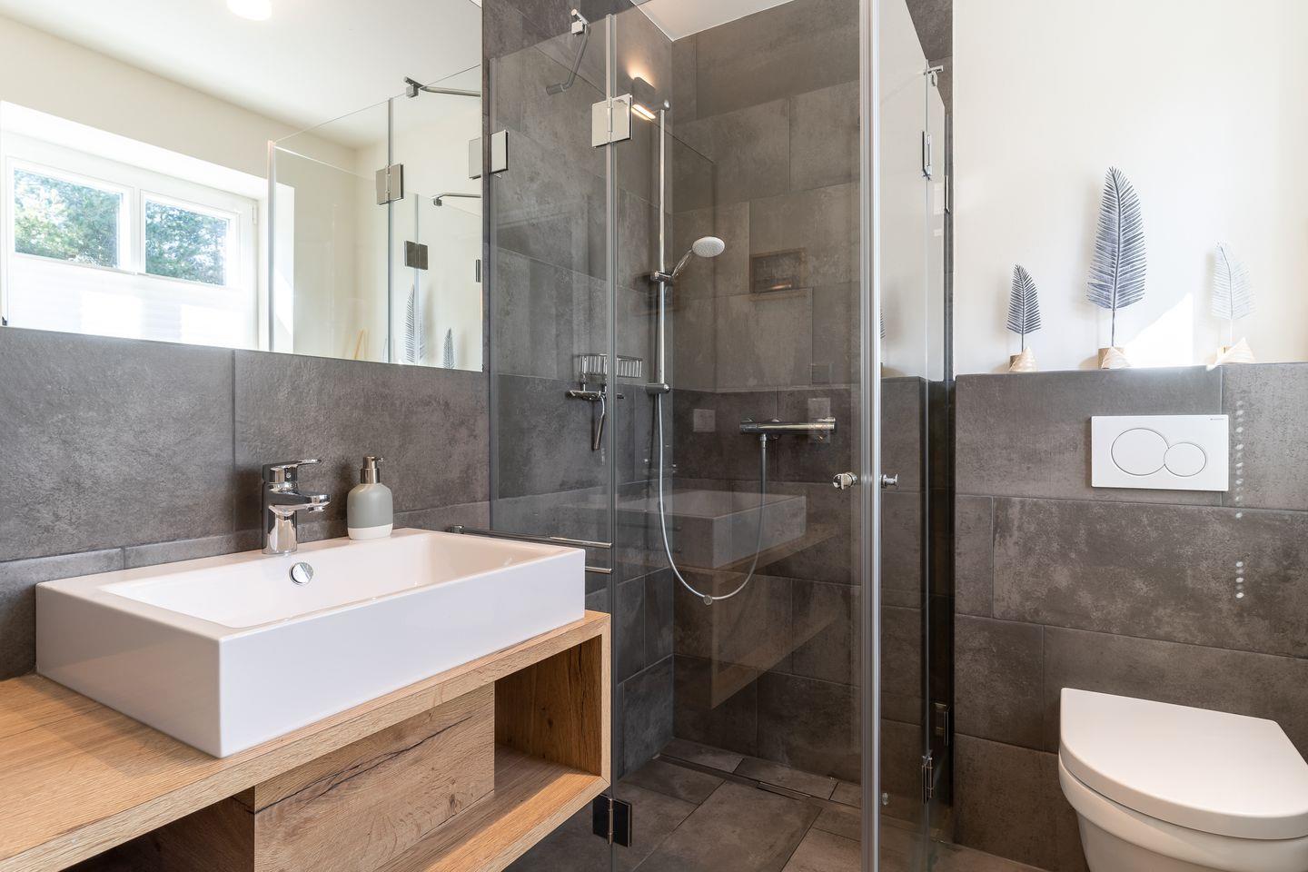 Im Erd- als auch Obergeschoss befindet sich je ein modernes Tageslichtbad mit bodengleicher Dusche und WC.