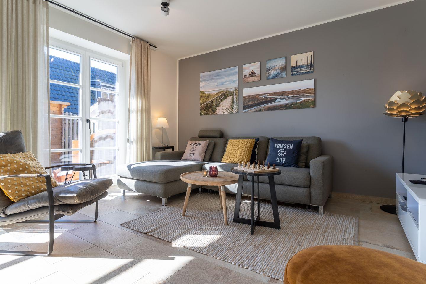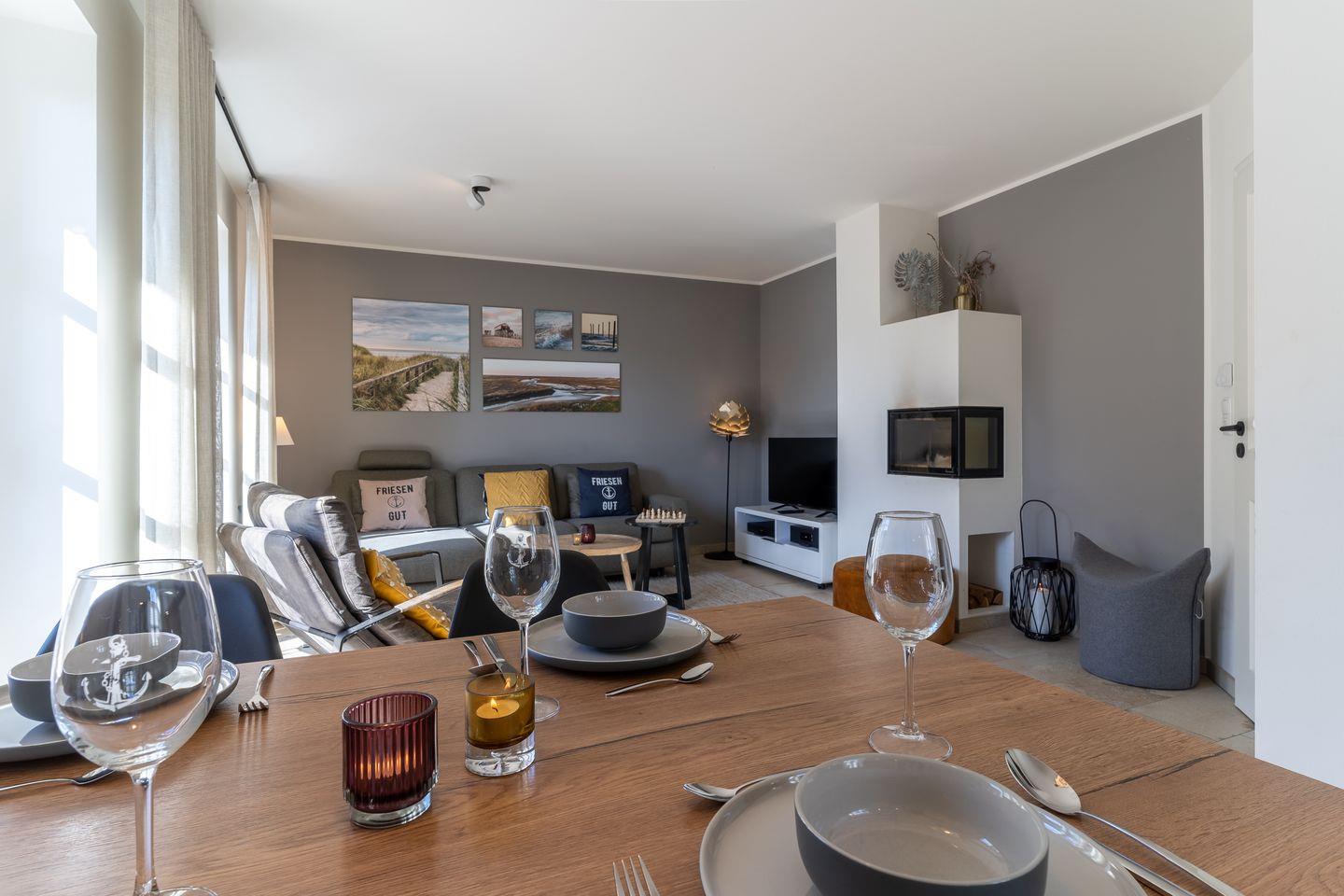 Die Reetdachhaushälfte auf 85 qm begeistert mit friesischem Charakter und behaglichem Interieur. Maßgefertigte Einbaumöbel bieten einen individuellen Komfort für geräumiges und lässiges Wohnen für bis zu fünf Gästen.