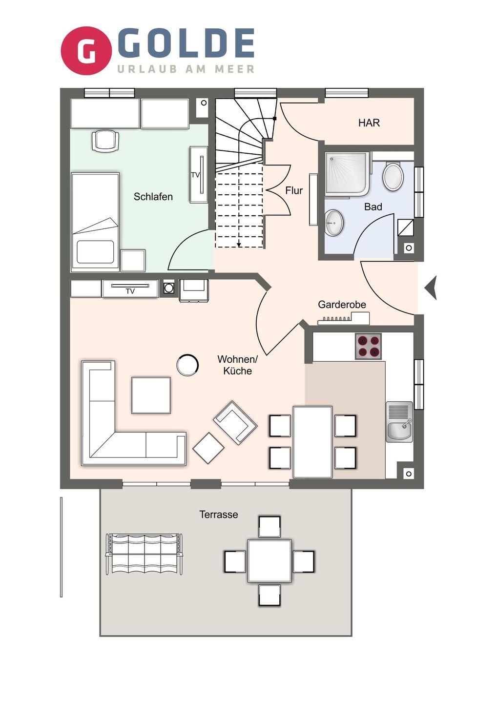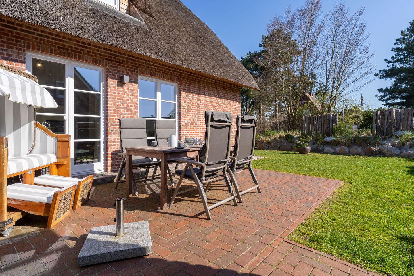 Im Außenbereich erwartet Sie der maritime und eingezäunte Dünengarten mit Rasenfläche und heimischen Pflanzen. Die windgeschützte Sonnenterrasse ist mit bequemen Möbeln, Sonnenschirm und Strandkorb ausgestattet.