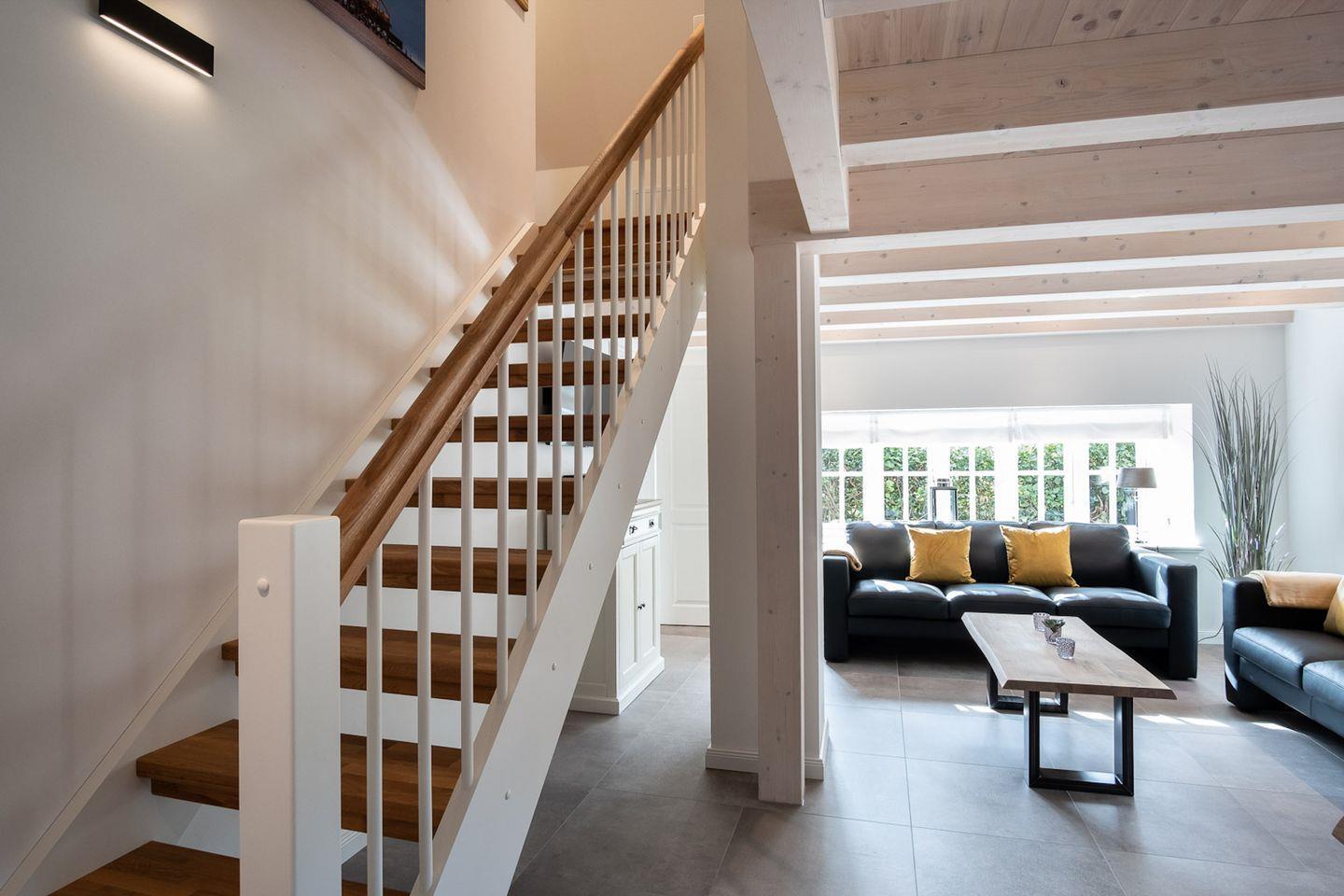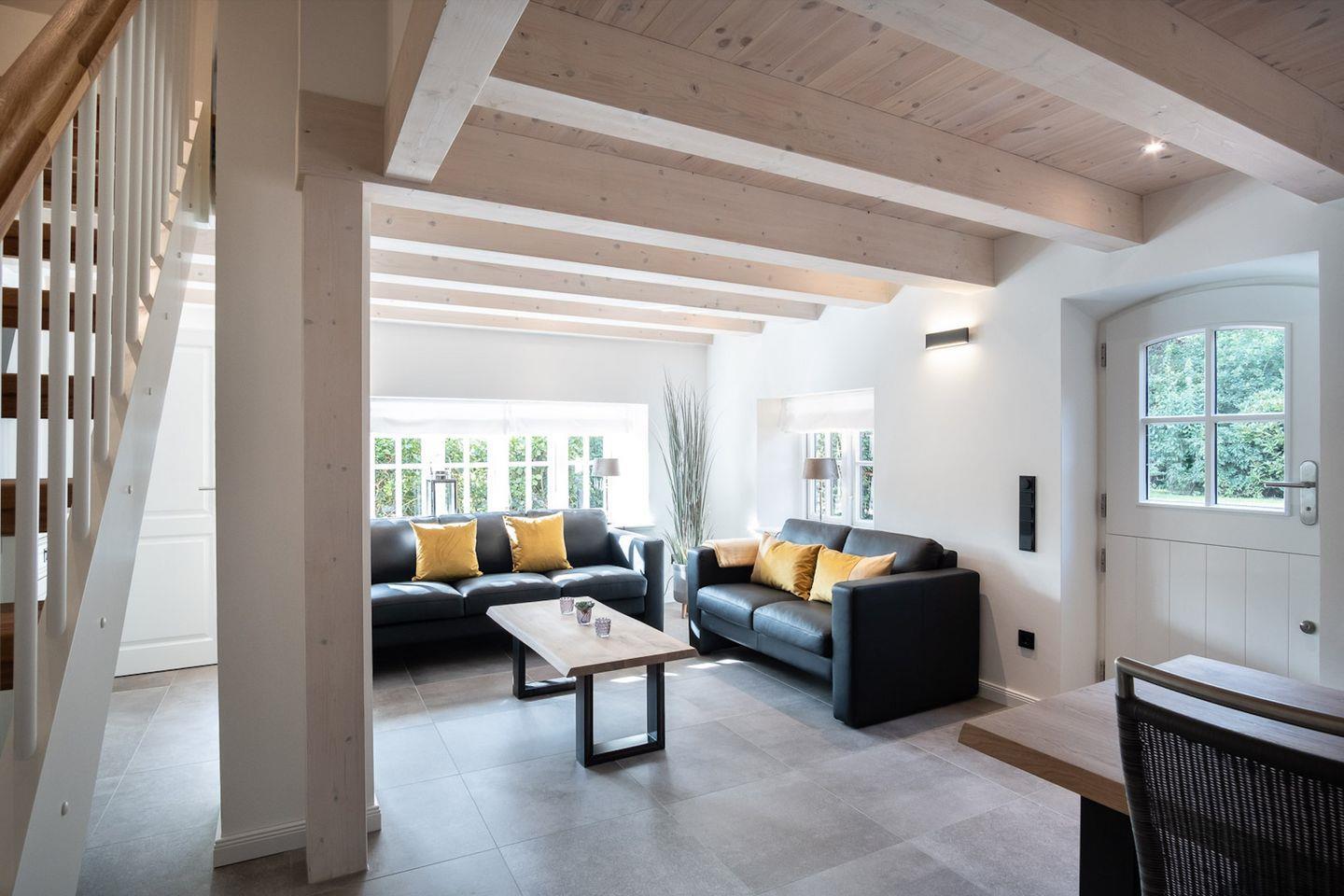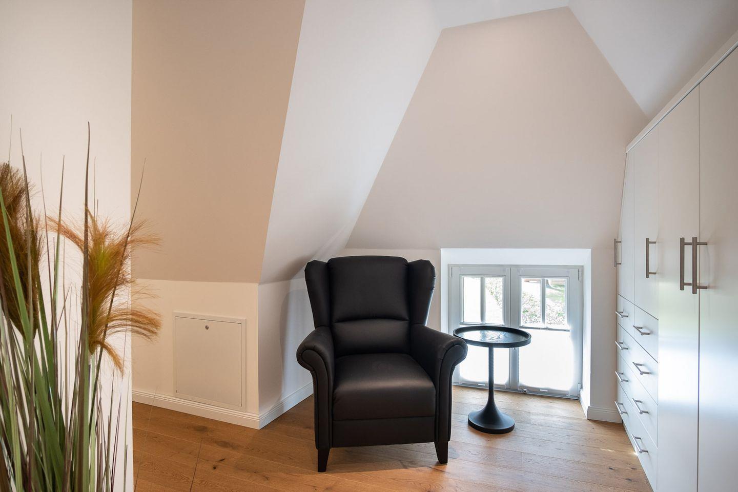 Im Erdgeschoss befindet sich der Wohnraum mit einem gemütlichen Essbereich und Zugang zur überdachten Terrasse, mit wunderschönem Ausblick in den Garten. Die angrenzende Wohnküche ist mit allen wichtigen Geräten voll ausgestattet und lädt zum gemeinsamen Kochen ein. Im Erdgeschoss ist ebenso ein Doppelschlafzimmer, sowie ein Duschbad mit WC und ein Hauswirtschaftsraum. Alle Räume sind mit Zugang nach draußen und bietet in den geschützten, außenliegenden Saunabereich Privatsphäre. Im Obergeschoss befindet sich ein Doppelschlafzimmer mit TV und ein Schlafzimmer mit Einzelbett. Auswärtsschlagende Fenster sorgen für besondere Atmosphäre. Außerdem befindet sich im Obergeschoss ein Duschbad.