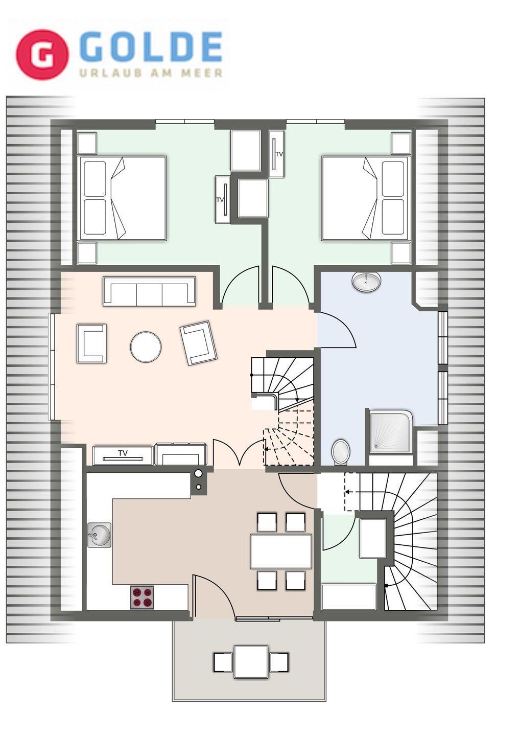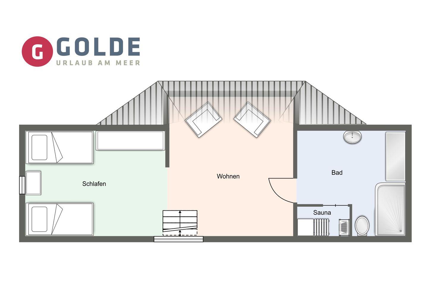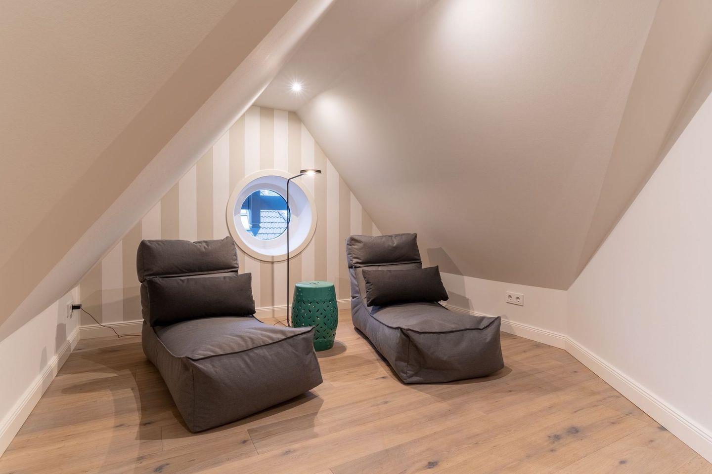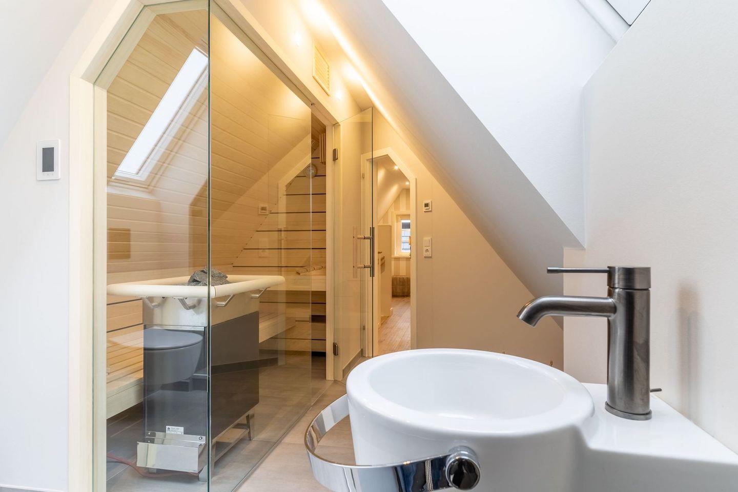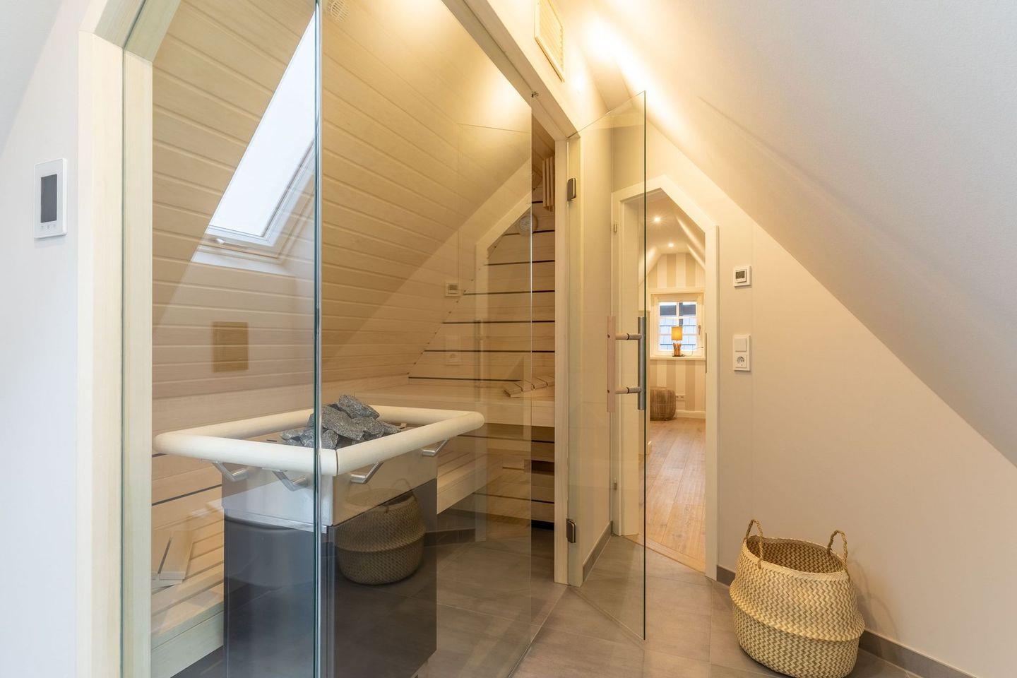 Im Dachgeschoss ermöglichen eine Sauna, Lounge-Möbel und ein 2. Bad Wellness-Urlaub mit Privatsphäre! Ein drittes Schlafzimmer mit 2 Einzelbetten schafft Ihnen die Möglichkeit, sich im Haus zu verteilen.
