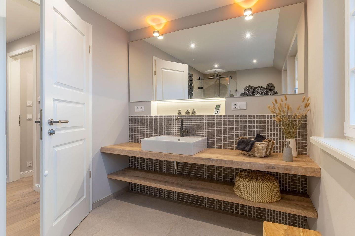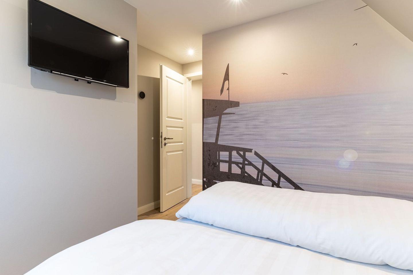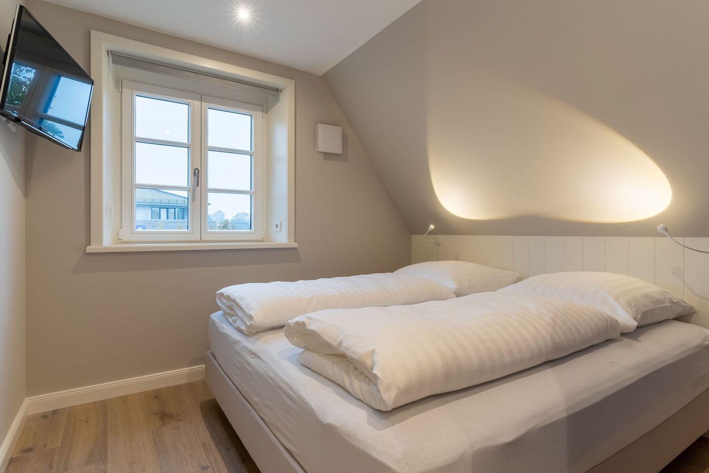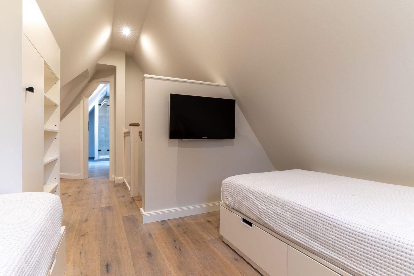 Ebenfalls im 1. Obergeschoss befinden sich die beiden Schlafzimmer mit Boxspringbetten und TV - sowie ein großzügiges Bad.