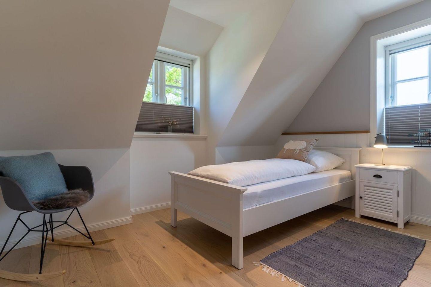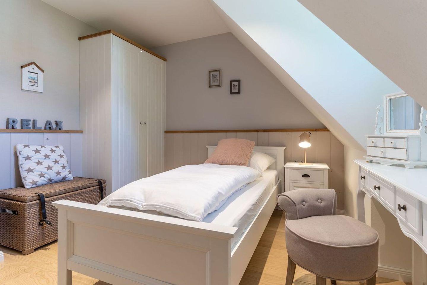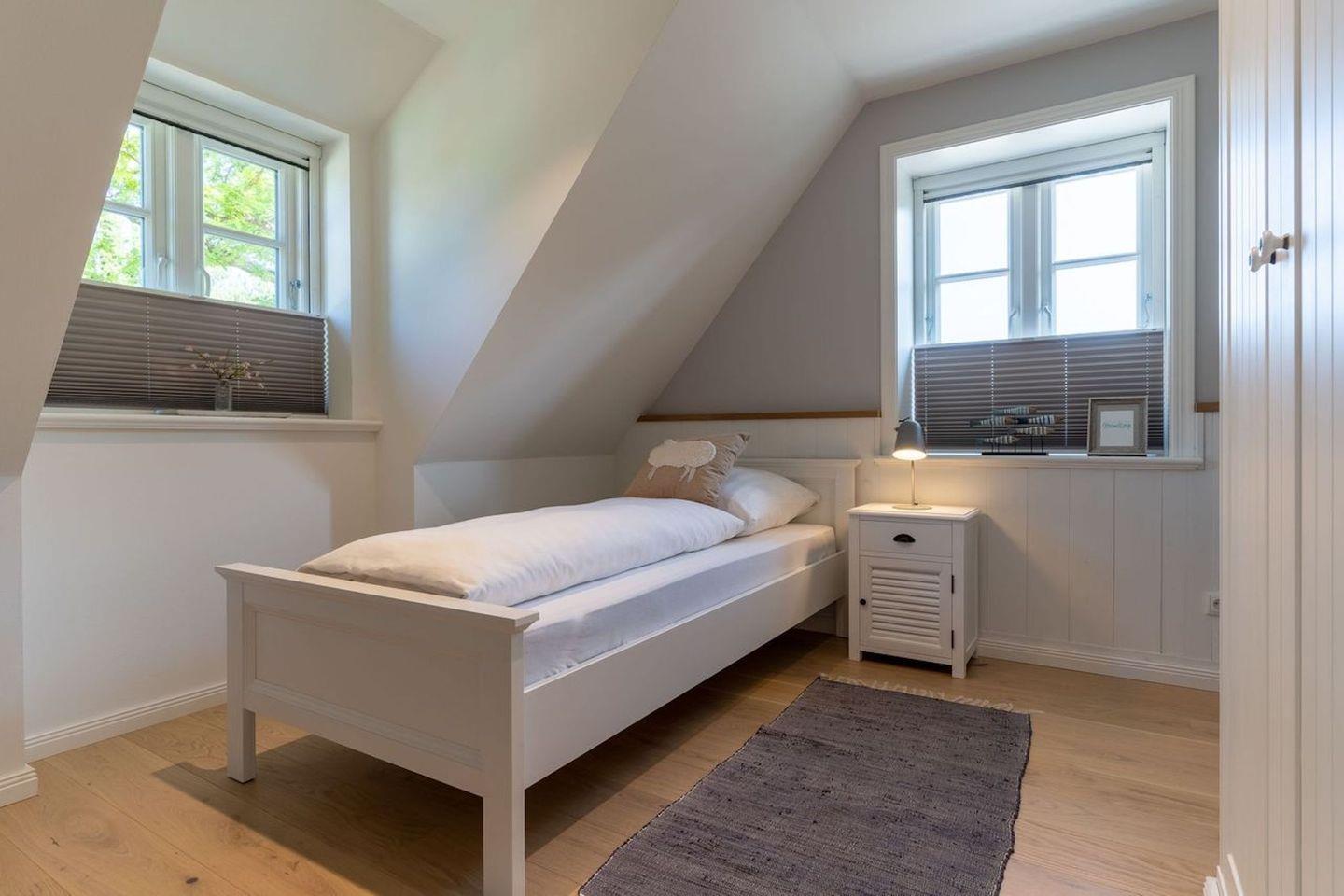 Darüber hinaus befinden sich im Obergeschoss zwei weitere Schlafzimmer mit je einem Einzelbett.