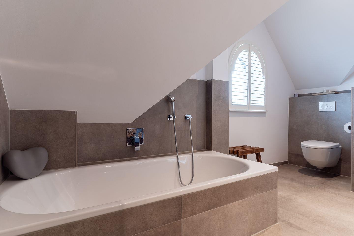 Ein weiteres voll ausgestattetes Badezimmer im Obergeschoss mit Dusche, Badewanne und zwei Waschbecken rundet das hochwertige Hauskonzept ab und lässt keine Wünsche offen.
