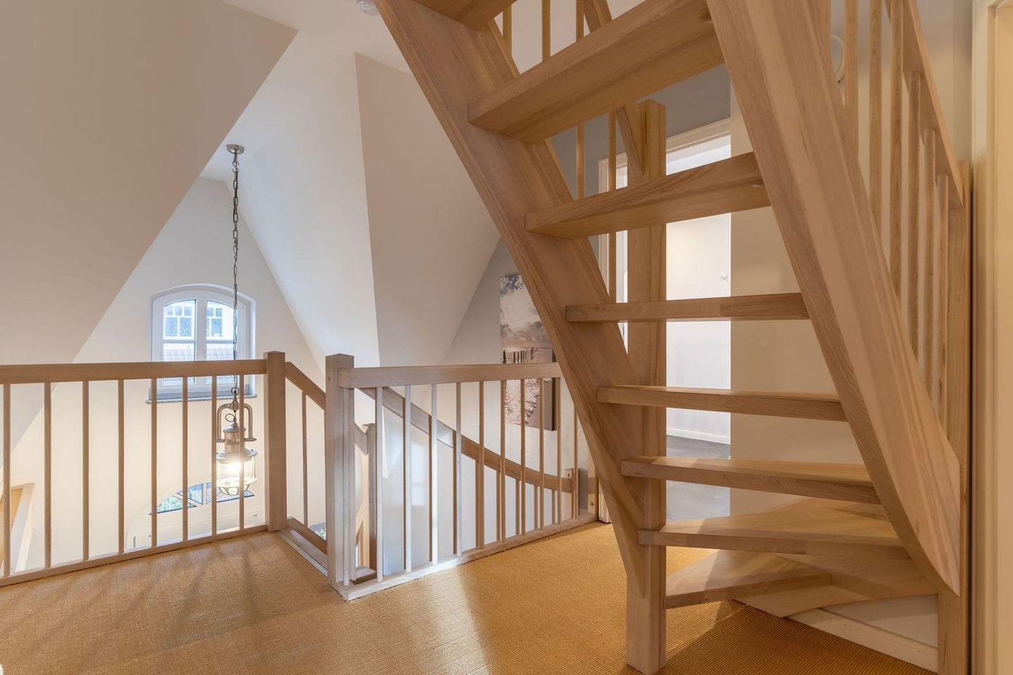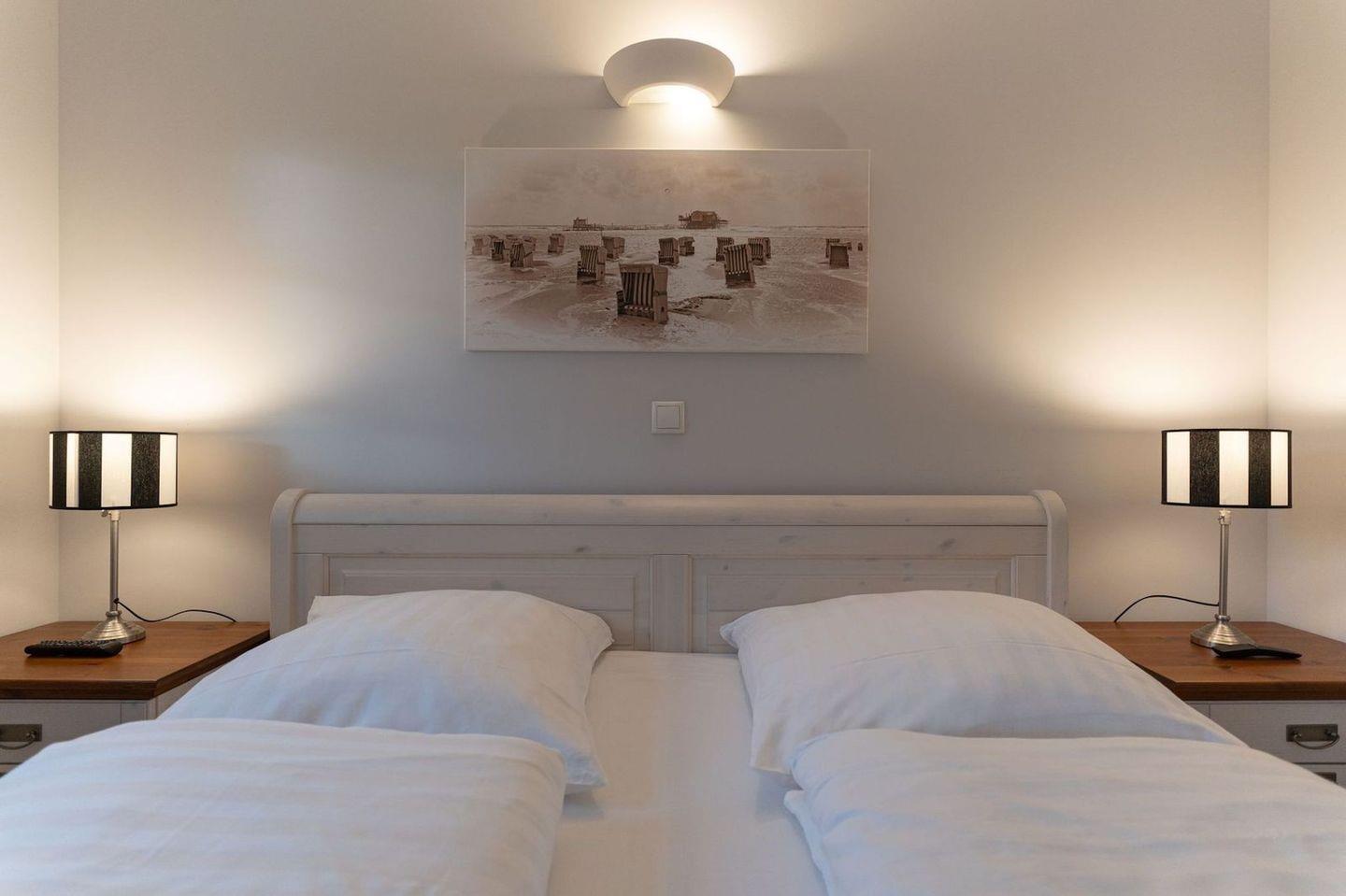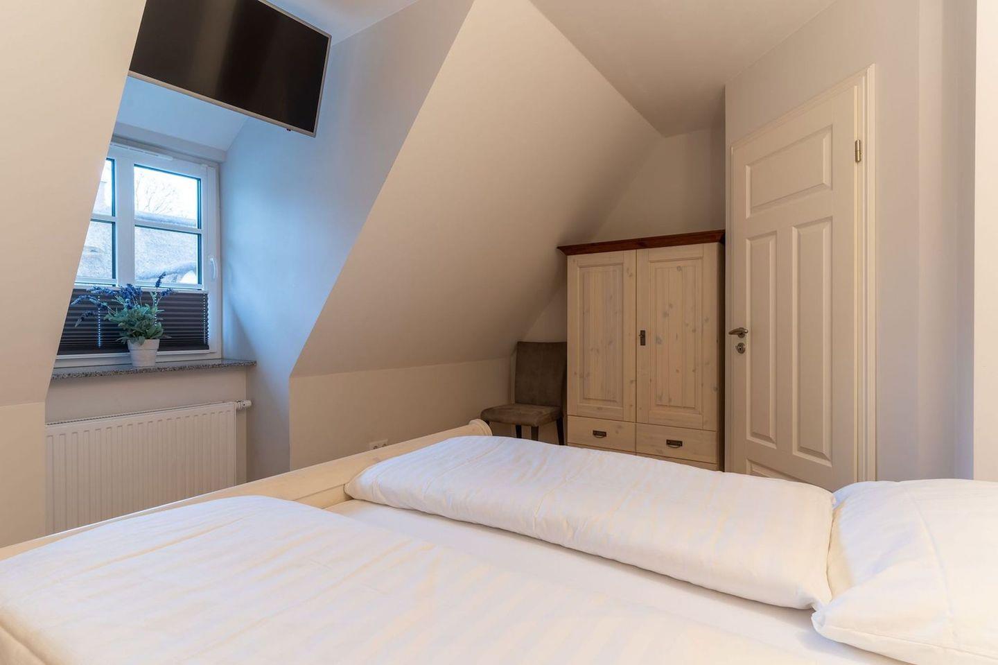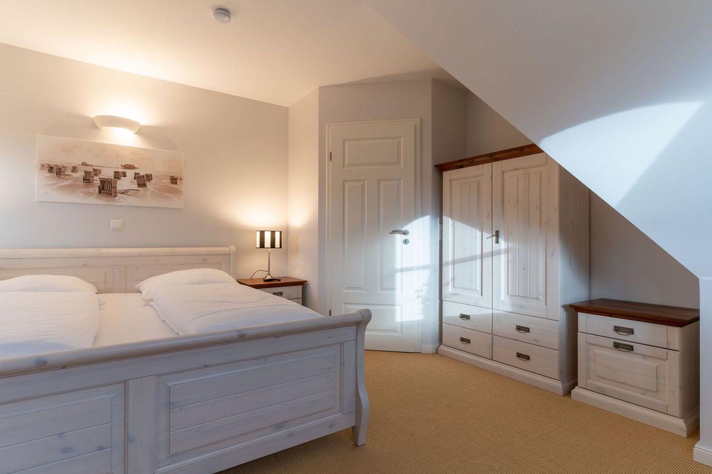 Über eine Holztreppe gelangt man in das Obergeschoss. Die beiden Schlafzimmer, jeweils mit einem Doppelbett sorgen für ruhevolle Erholung.