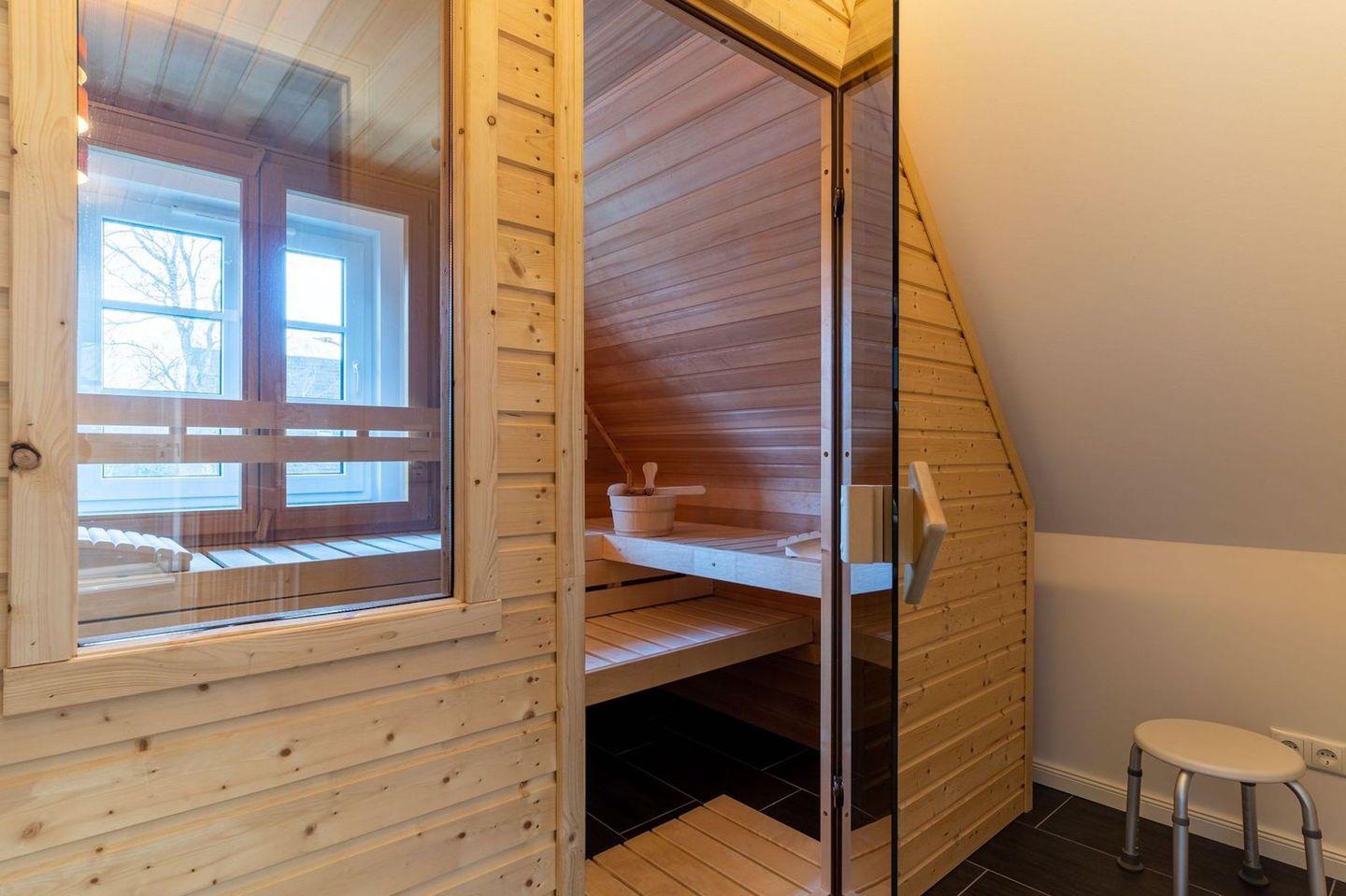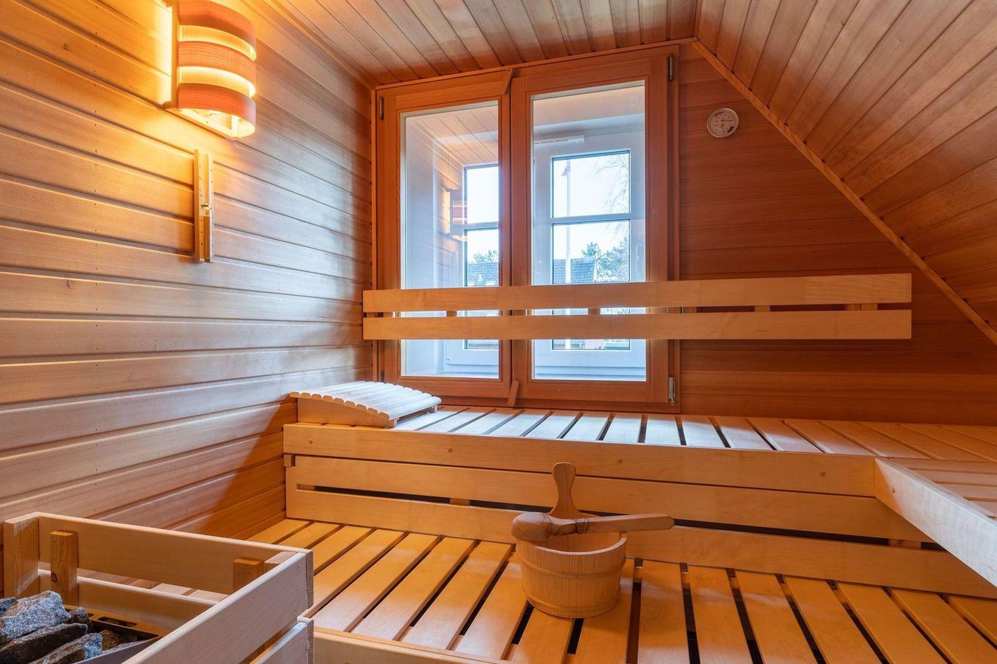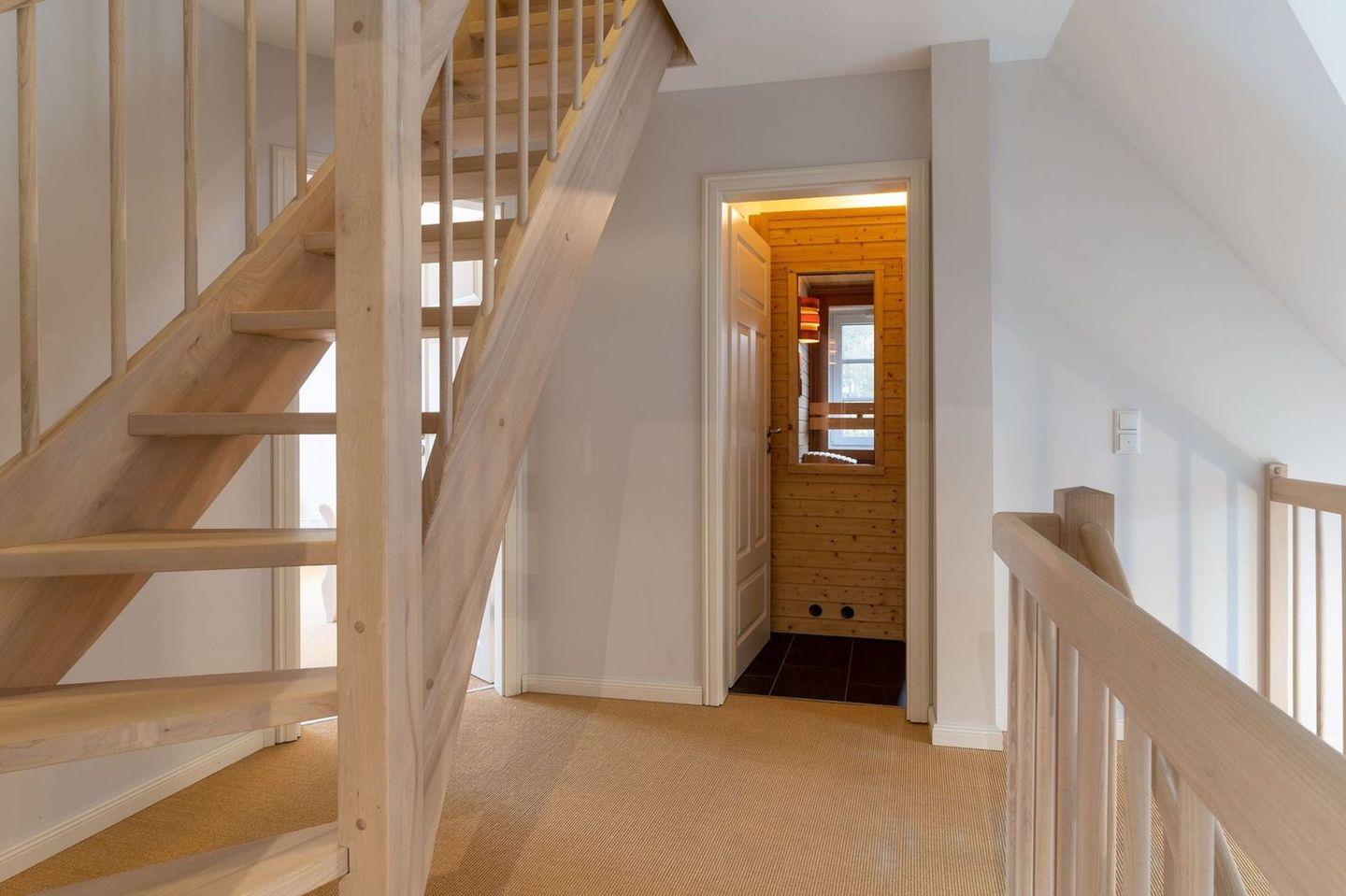 Im ersten Stock befindet sich ausserdem ein weiteres Duschbad sowie eine Sauna.