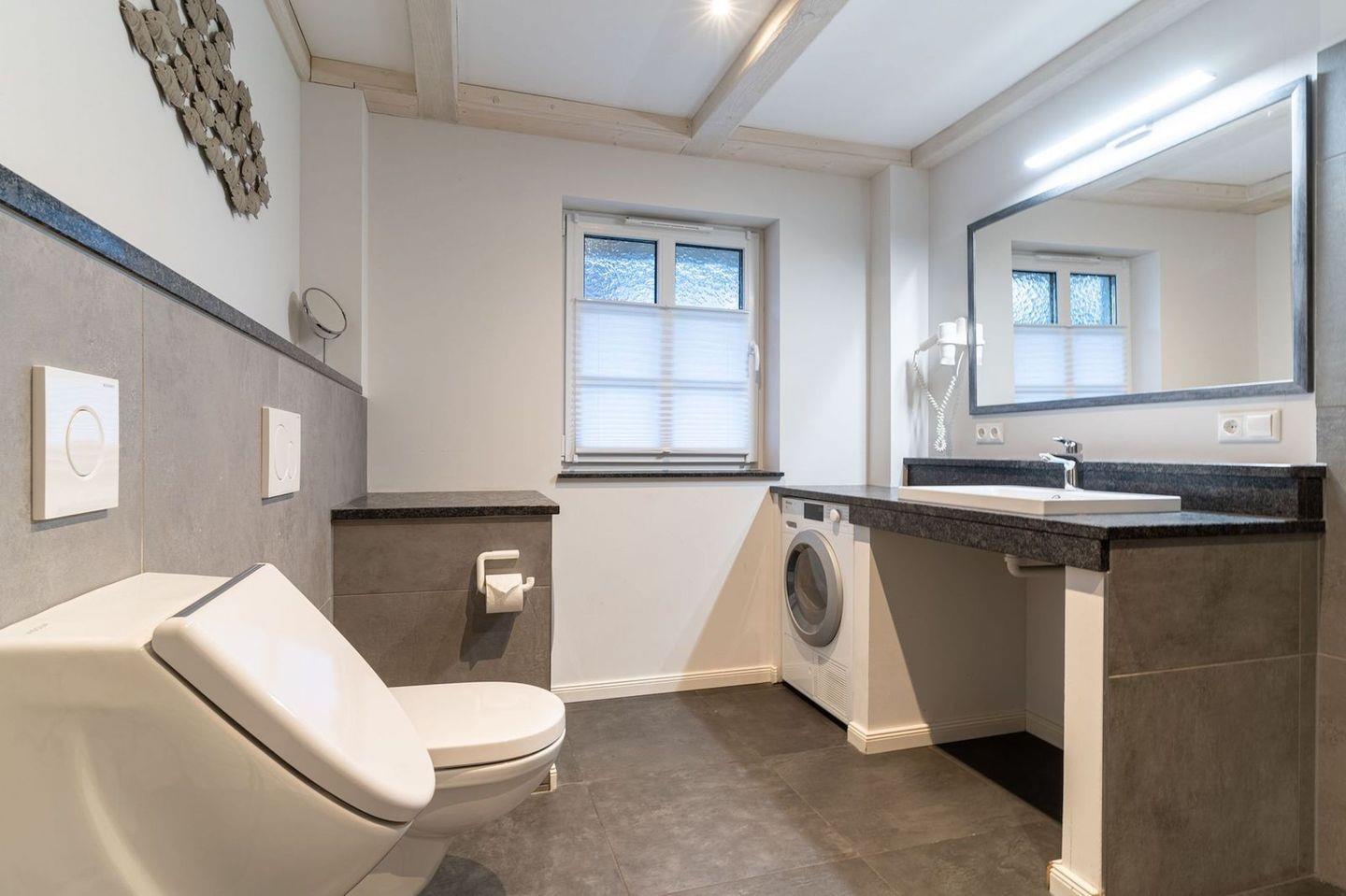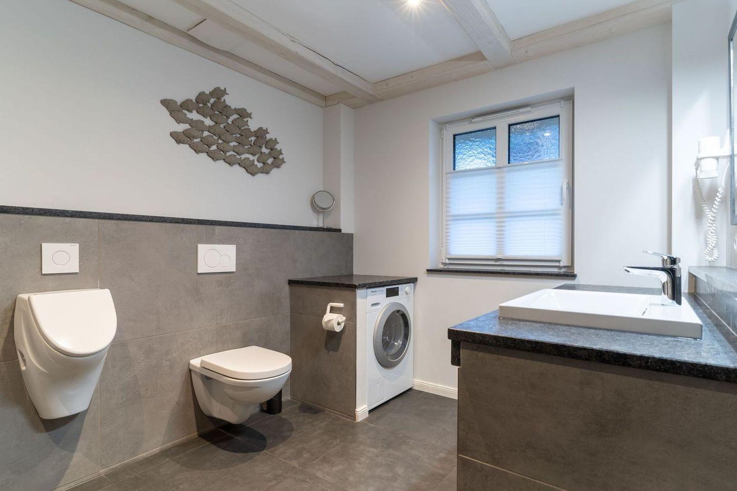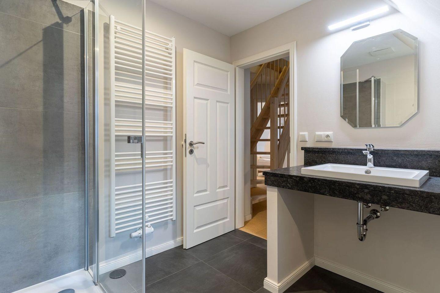 Im ersten Stock befindet sich ausserdem ein weiteres Duschbad sowie eine Sauna.