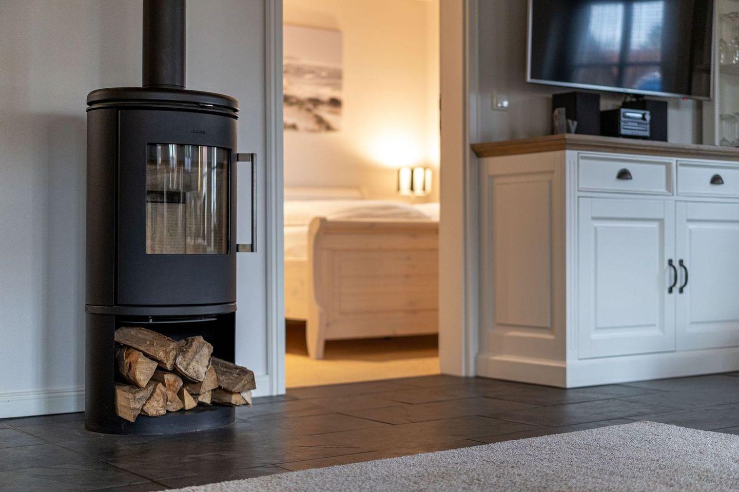 Im Erdgeschoss befindet sich der lichtdurchflutete Wohnraum mit TV, Kamin, einer offenen Küche sowie einem stilvollen Essbereich.