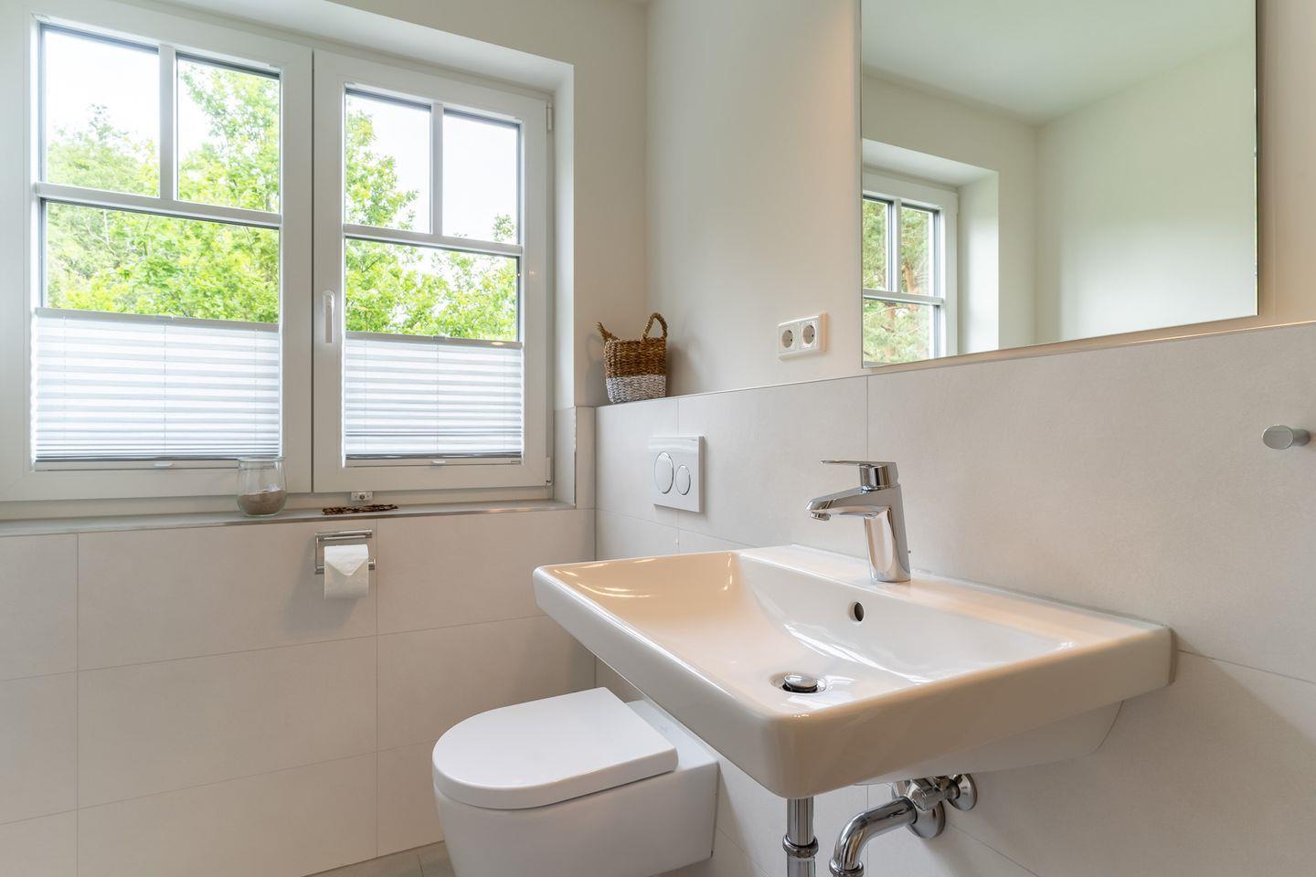 In allen Schlafzimmer ist ein Insektenschutz vorhanden. Zwei Doppelschlafzimmer mit je einem eigenen Duschbad, außerdem ein Zweitbettzimmer. Im Obergeschoss befindet sich ebenso ein 3. Duschbad.