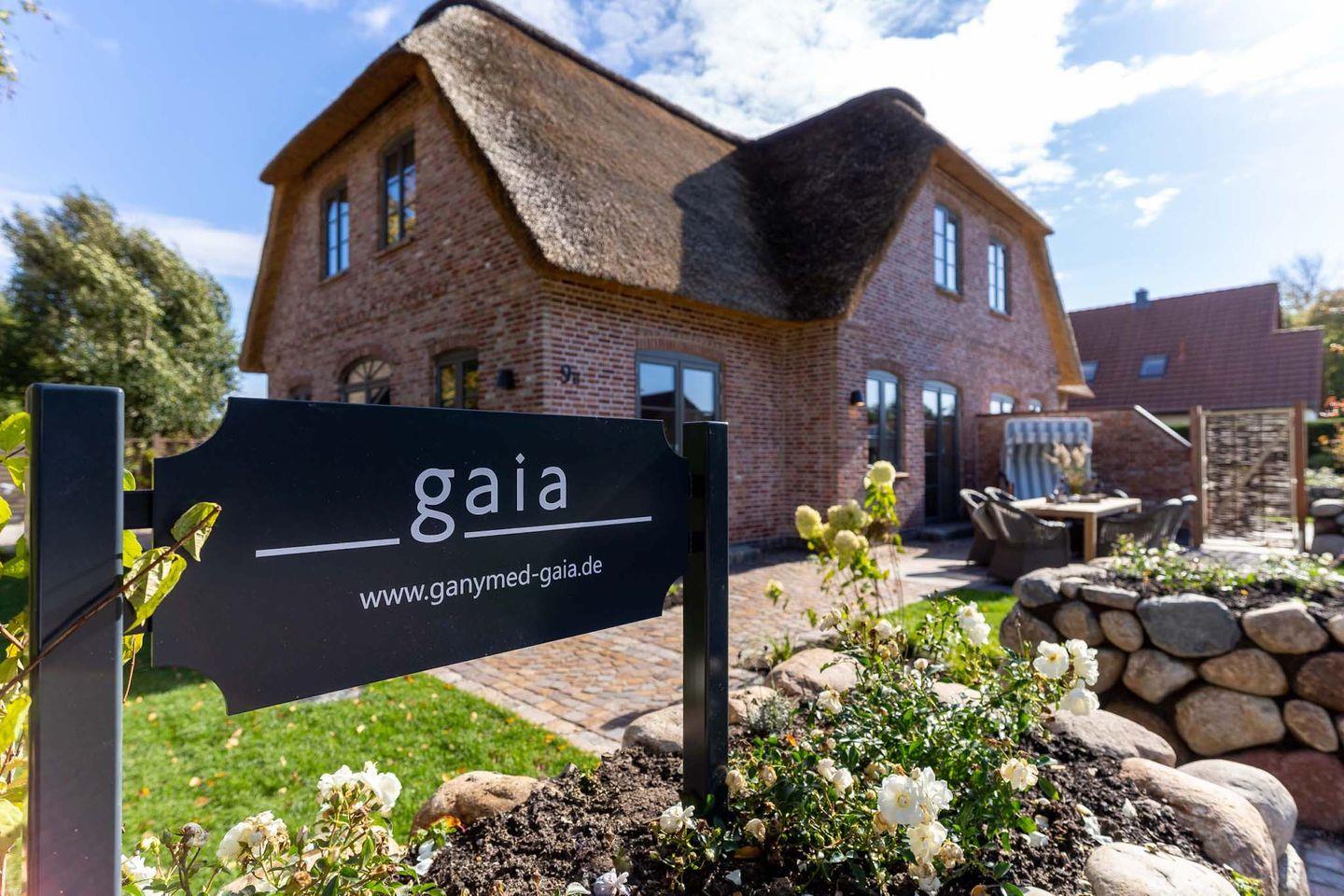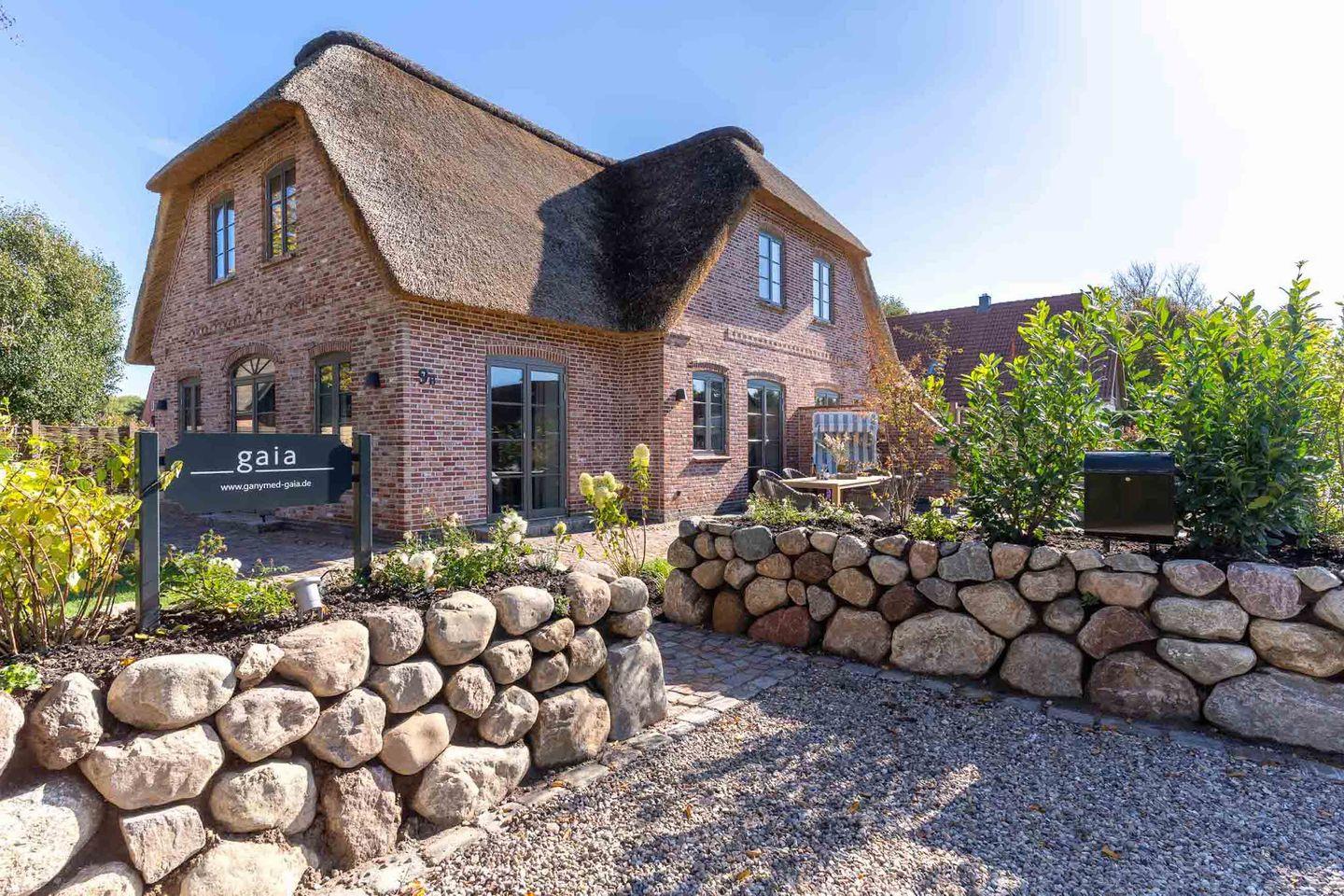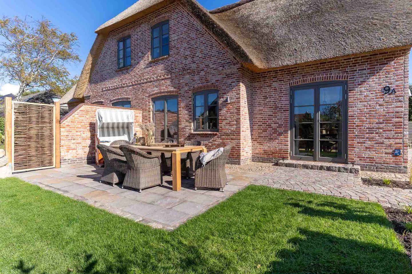 Luxuriöse Reetdach-Doppelhaushälfte Gaia in St. Peter-Dorf mit Sauna, Garten und zwei Terrassen für erholsamen Urlaub an der Nordsee.