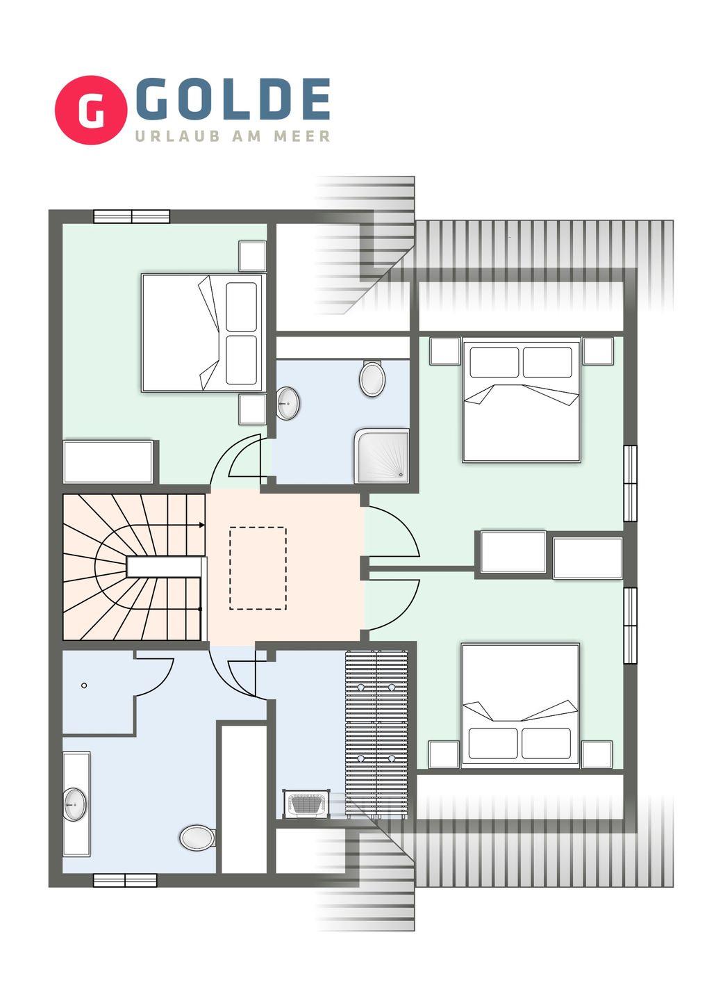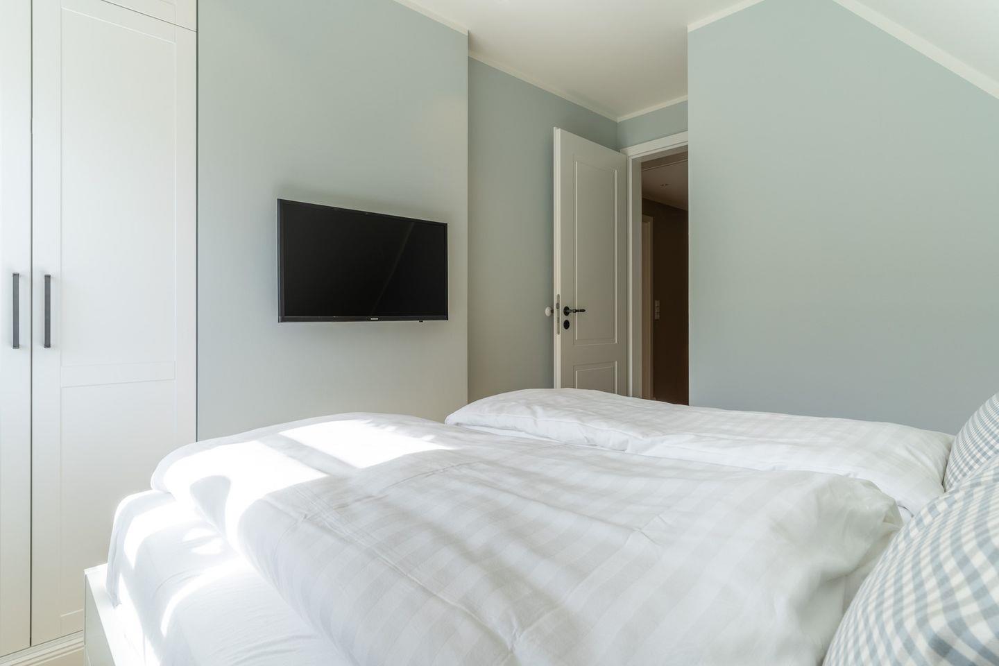 Über eine schöne Holztreppe gelangt man in das Obergeschoss, in dem sich 3 liebevoll eingerichtete Schlafzimmer sowie 2 Bäder mit einer kleinen Sauna befinden. Das Master-Schlafzimmer verfügt über ein Doppelbett, einen TV, einen großen Kleiderschrank sowie ein eigenes kleines Bad en suite. Die 2 anderen Schlafzimmer sind ebenfalls mit TV und einem Kleiderschrank ausgestattet.