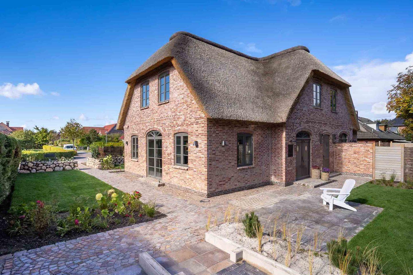 Luxuriöse Reetdach-Doppelhaushälfte mit Sauna und zwei Terrassen in St. Peter-Ording Dorf.