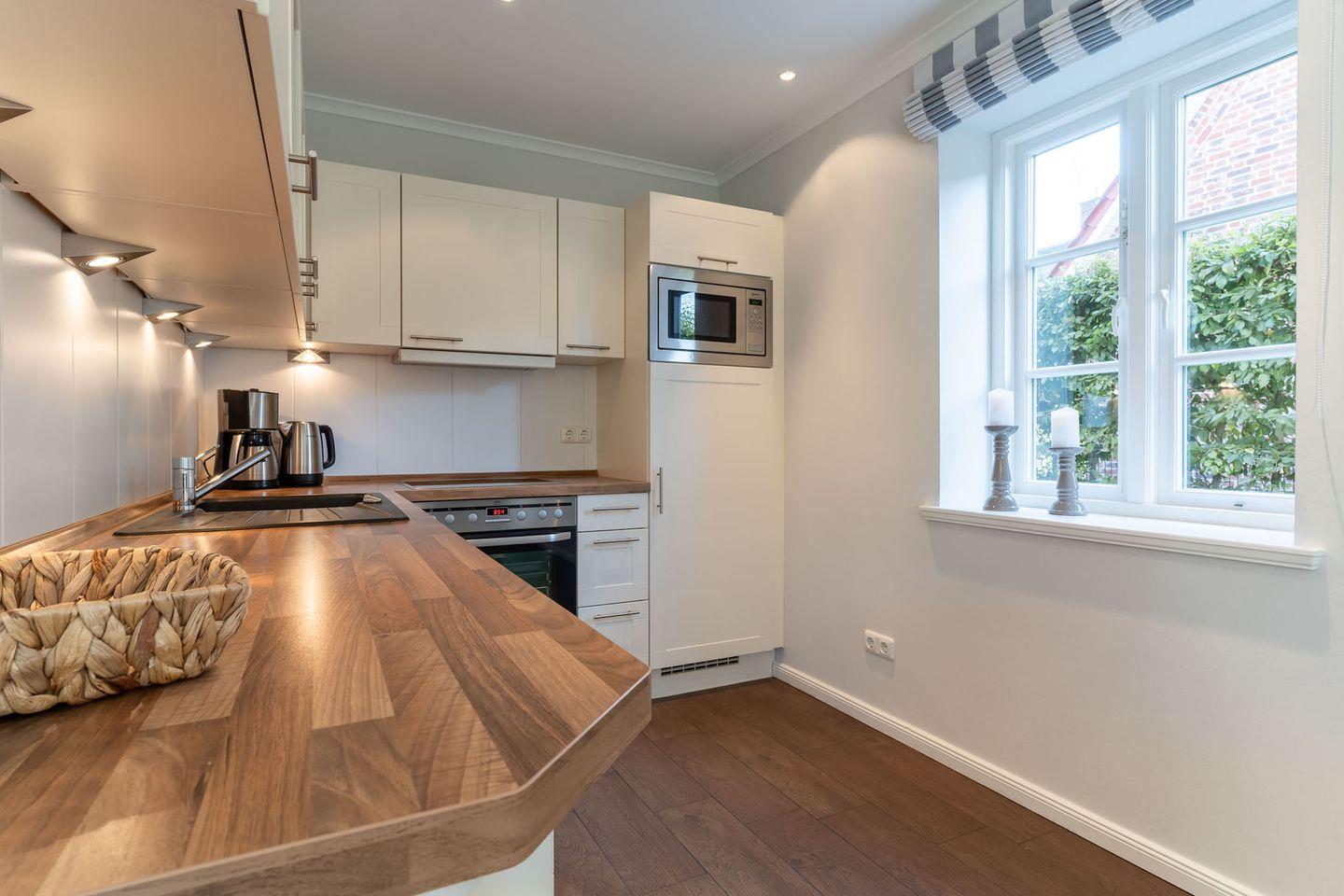 Hervorzuheben ist zudem die zentrale Lage des Objekts, innerhalb einer Minute befinden Sie sich im Zentrum des Ortsteils Dorf umgeben von verschiedenen Einkaufsmöglichkeiten und Restaurants. Auch der Deich ist in etwa 5 Gehminuten erreicht, trotzdem finden Sie Ruhe und Entspannung in Ihrem Garten.