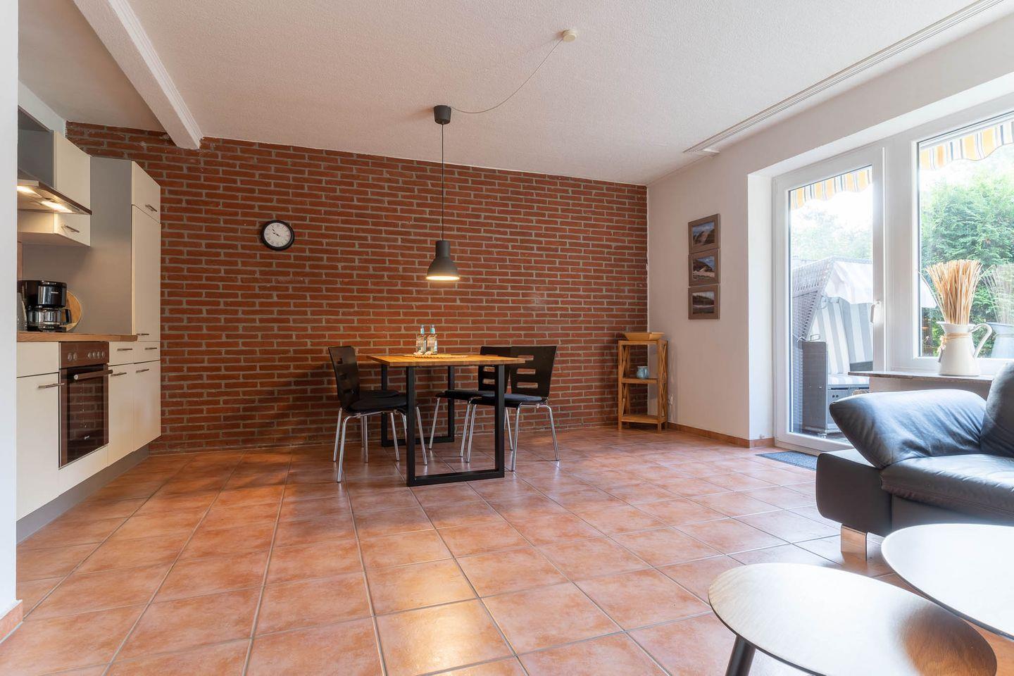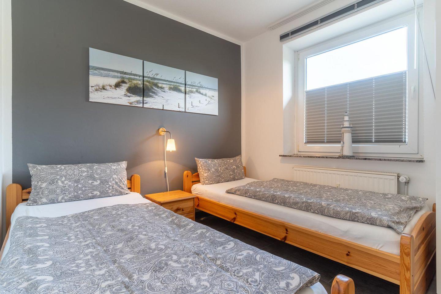 Die schöne 3-Zimmer Wohnung liegt in ruhigen Lage nur wenige Gehminuten vom Dorfzentrum entfernt. Die Wohnung verfügt über ca. 63qm Wohnfläche und bietet Platz für 4 Personen. Über den Haupteingang gelangen Sie in den Flur mit Garderobe, von dem alle weiteren Räume abgehen. Es gibt 2 Schlafräume, eins mit einem Doppelbett und das andere mit 2 Einzelbetten. Ein gemütliches Wohnzimmer mit 2 Sofas und TV laden zum erholen und entspannen ein.