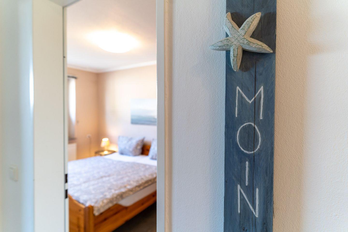 Beim Betreten der Wohnung werden Sie von einem geräumigen Flur mit Garderobe empfangen, von dem aus alle weiteren Räume zugänglich sind. Die Wohnung verfügt über zwei liebevoll eingerichtete Schlafzimmer, eines mit einem bequemen Doppelbett und das andere mit zwei gemütlichen Einzelbetten. Hier können Sie sich zurückziehen und erholsame Nächte genießen.