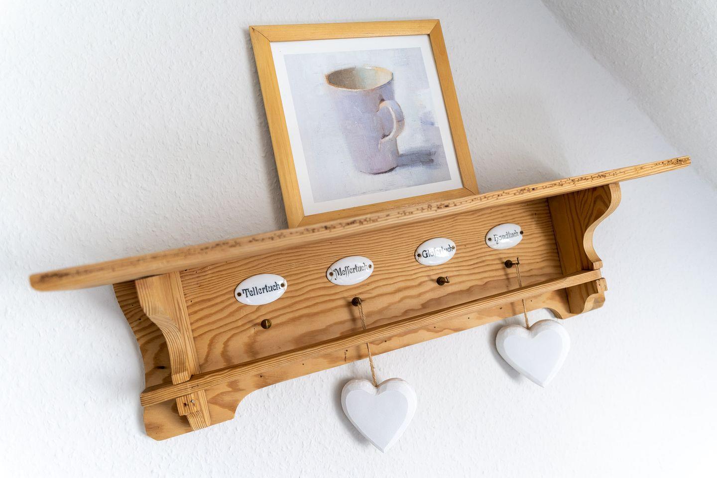 Die Wohnung ist liebevoll eingerichtet und sehr gut ausgestattet für die schönsten Tage des Jahres. Wir freuen uns, Sie bald als GESTRANDET bei uns begrüßen zu dürfen. Ein romantisches Nest. Im Obergeschoß gelegen ist diese geschmackvoll eingerichtete Wohnung eine Oase der Gemütlichkeit. Helle, freundliche Pastelltöne in Verbindung mit ausgesuchtem Mobiliar schaffen ein Ambiente mit hohem Wohlfühlfaktor. Die separierte kleine Küche ist perfekt ausgestattet.