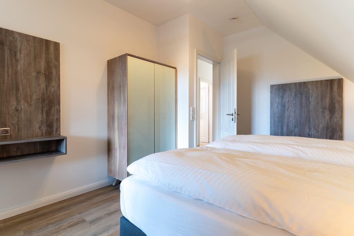 Das Schlafzimmer mit 180er Doppelbett sorgt für entspannte Erholung.