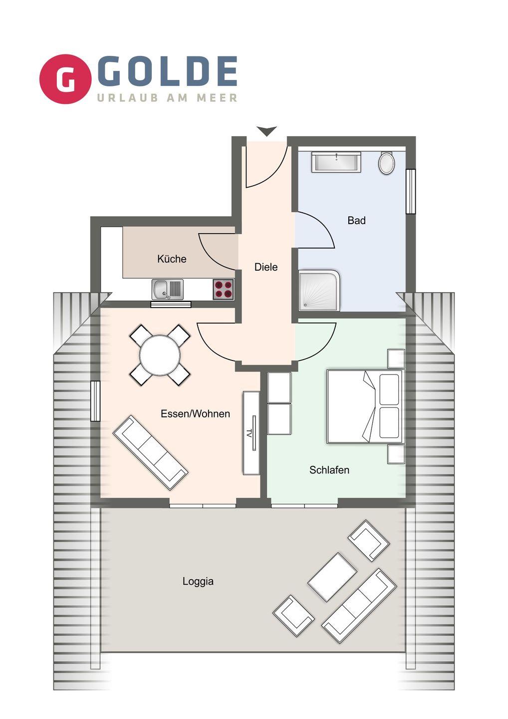 Das luxuriöse Appartement "SPO-Bude 3" verfügt über ca. 70qm und befindet sich im Obergeschoss. Es bietet Platz für 1 - 2 Personen.