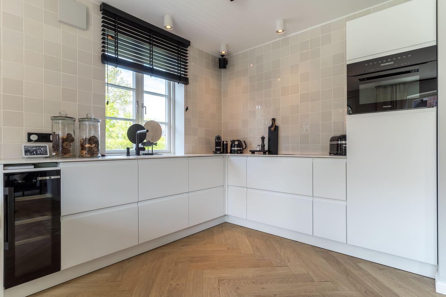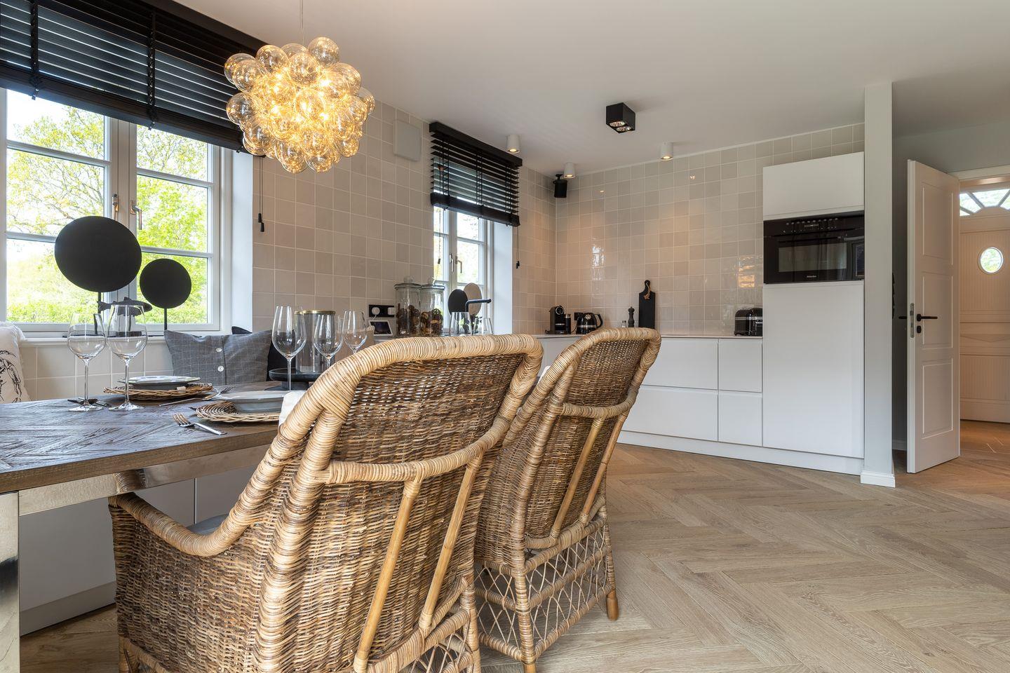 Die Küche verfügt über hochwertige Elektrogeräte, einen Weinkühlschrank und bietet genügend Platz zum gemeinsamen Kochen.