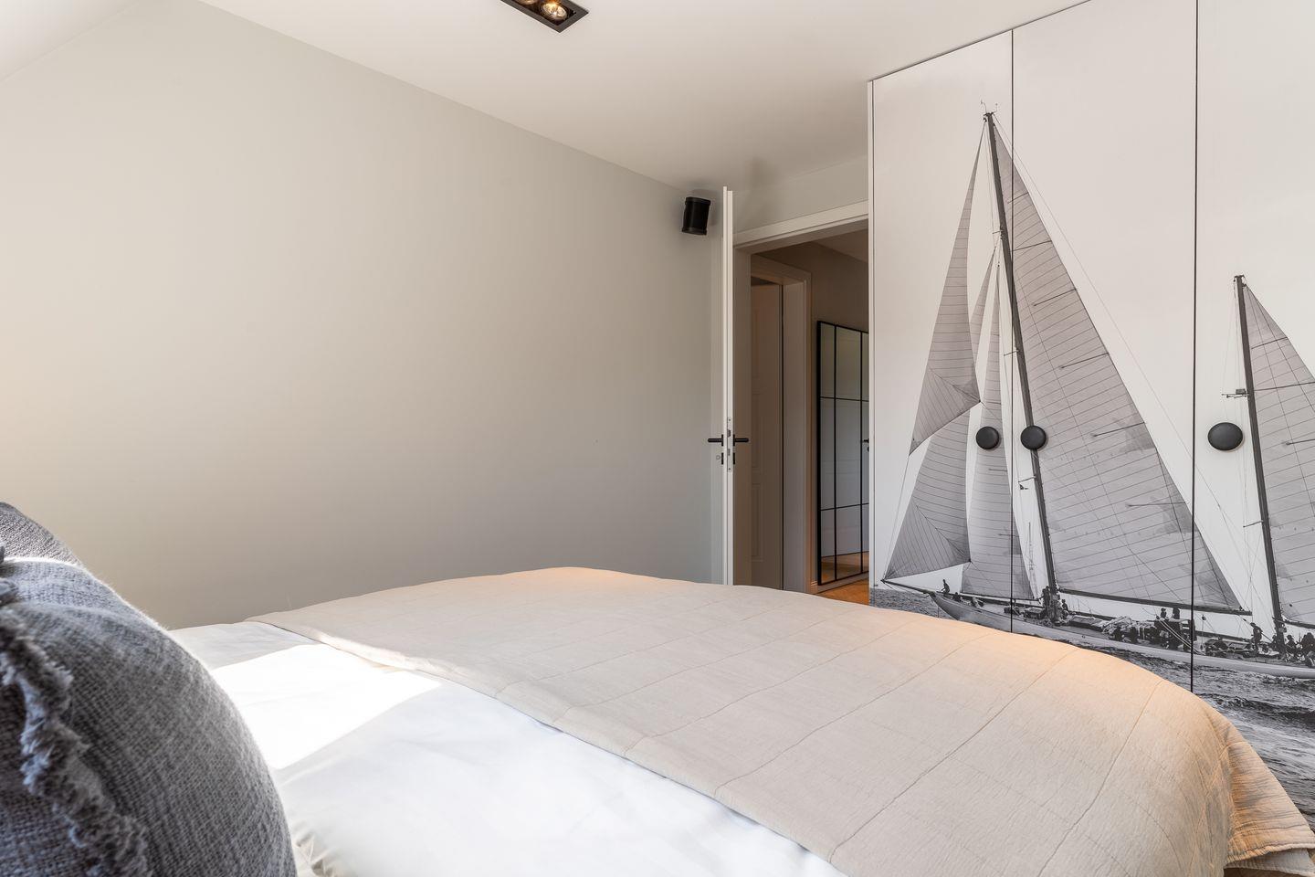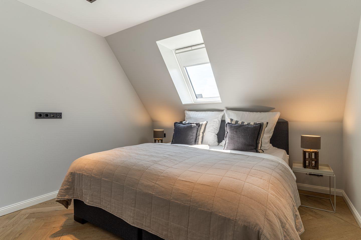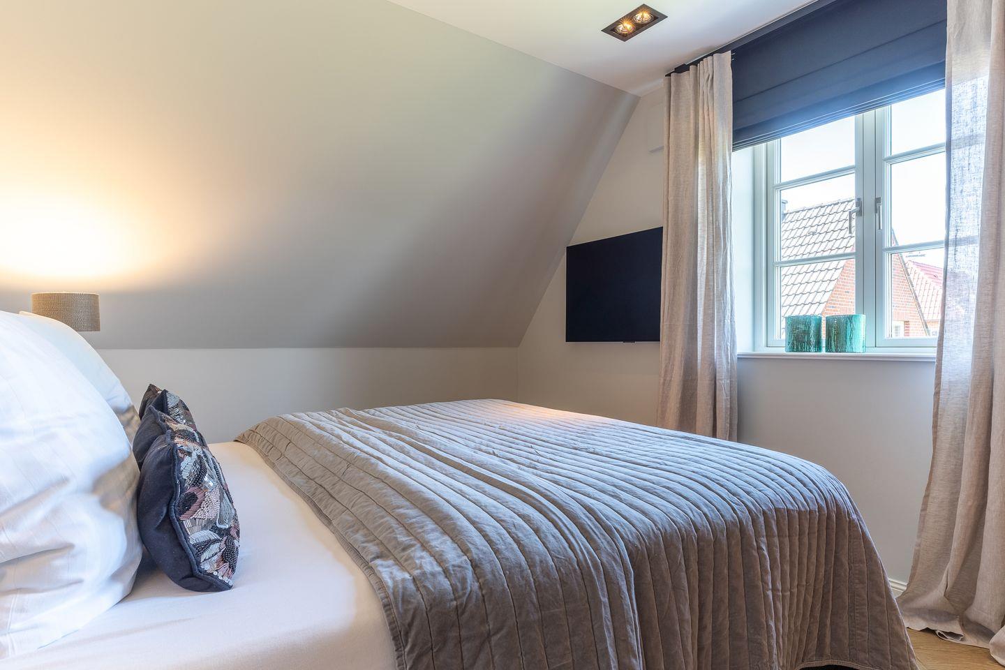 Zwei Schlafzimmer mit je einem Boxspring-Doppelbett (180x200 m) sind ausgestattet mit großen Kleiderschränken.