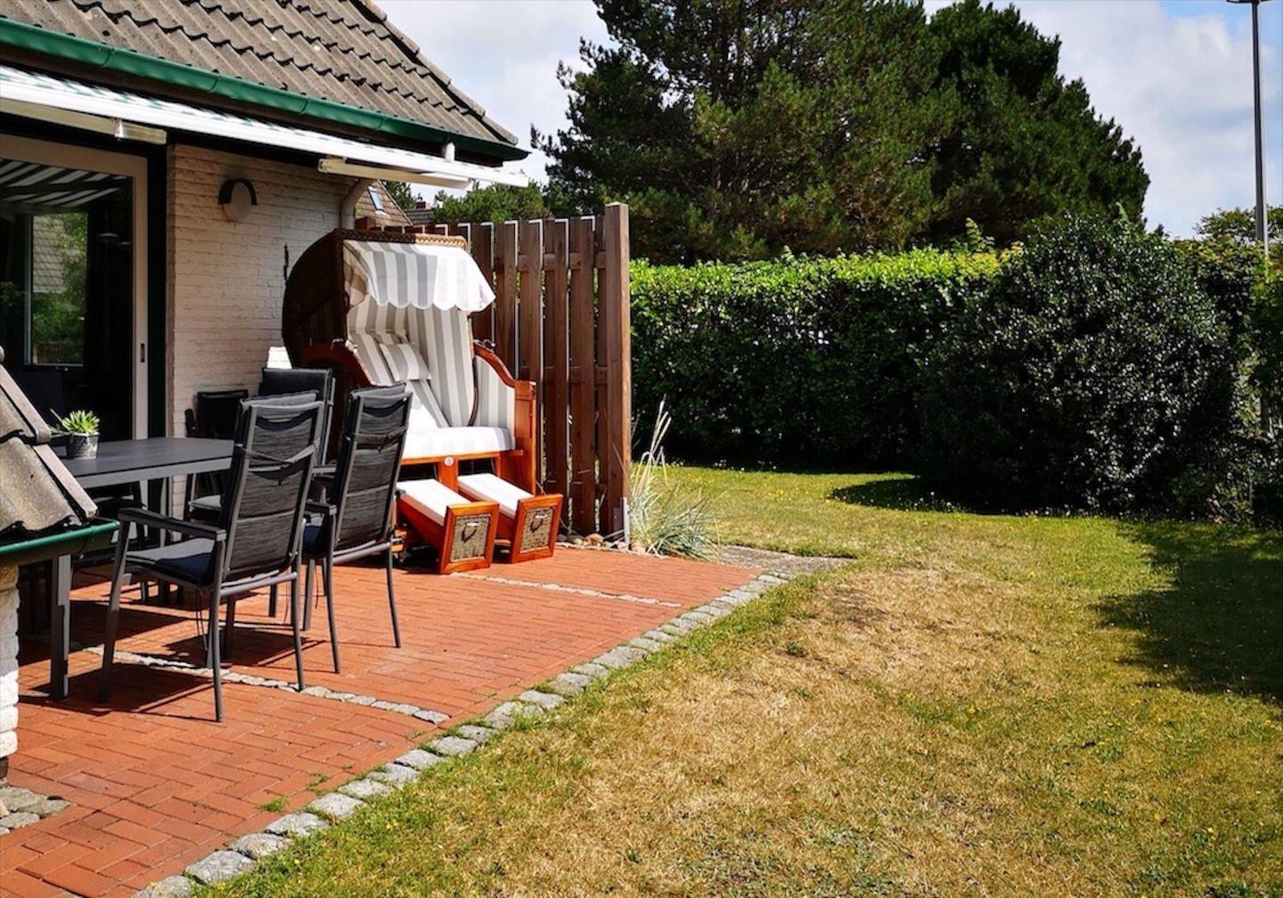 Erleben Sie Ruhe und Erholung in dem gemütlichen, sonnigen Ferienhaus am Ende einer Sackgasse gelegen. Nur 5-10 Gehminuten vom beschaulichen Ortskern "Dorf" entfernt, erwarten Sie dort gemütliche Cafés, Restaurants und vielseitige, interessante Einkaufsmöglichkeiten inklusive eines lebhaften Wochenmarktes. Zum Deich sind es ebenfalls 10 Minuten zu Fuß – ideal für entspannte Spaziergänge und unvergessliche Sonnenuntergänge.