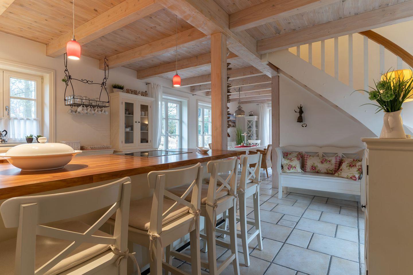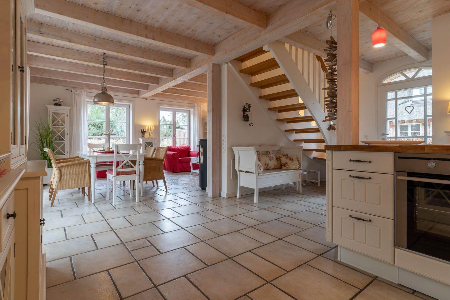 Draußen der wunderschöne Garten in direkter Nähe zum Seedeich, innen wunderschöne Atmosphäre mit persönlicher Note. Im Haus sind drei Schlafzimmer, zwei Badezimmer und ein Wohnzimmer mit offener Wohnküche für gemeinsame Momente auf der gemütlichen Couch am Ofen. Die Küche ist vollausgestattet und lädt zum gemeinsamen Kochen ein.
