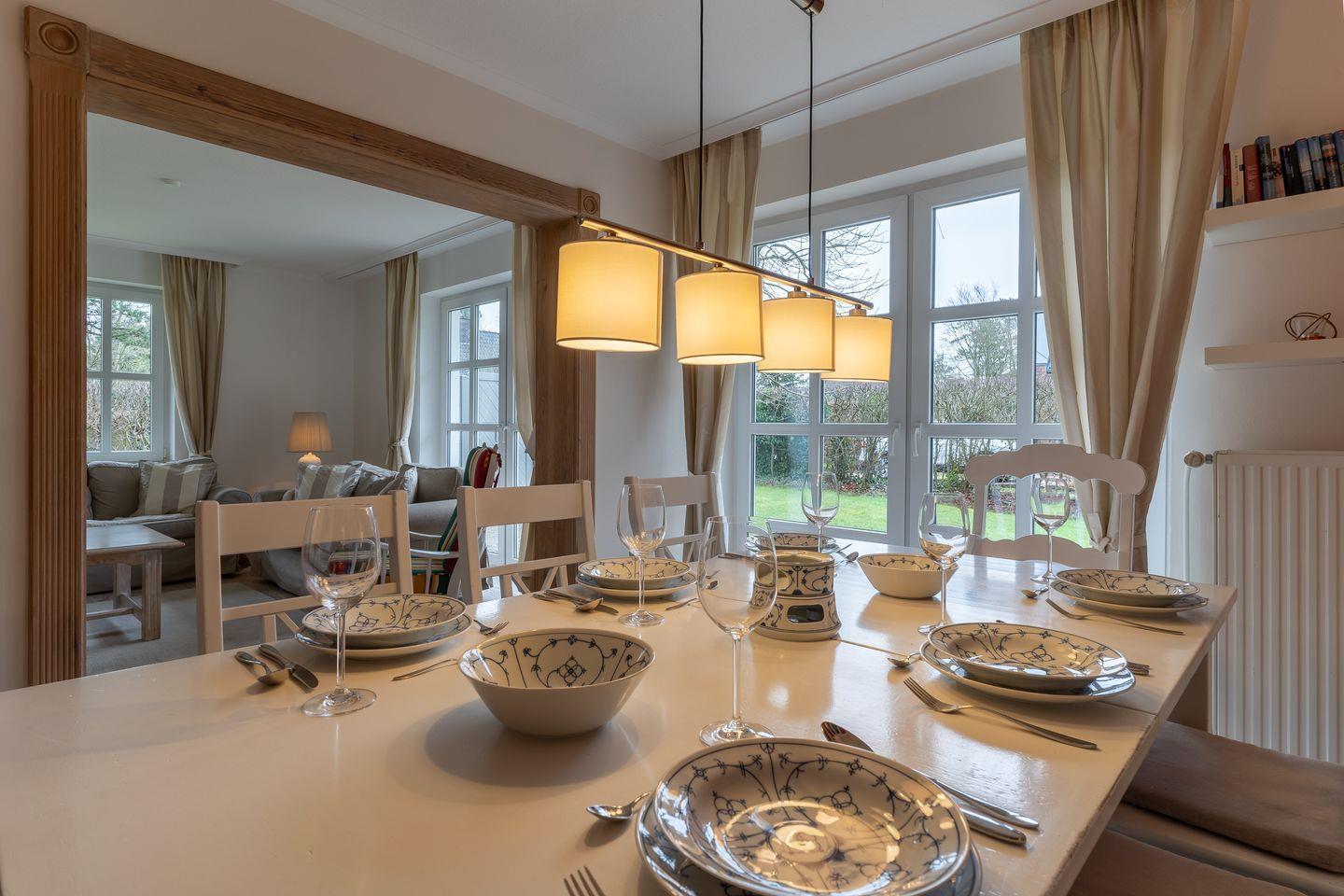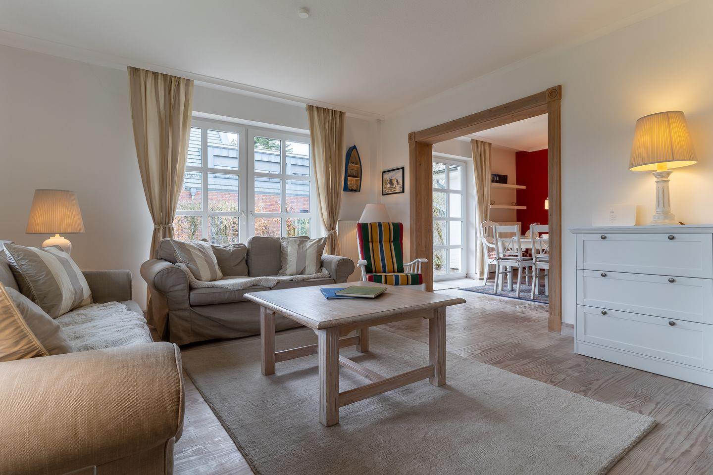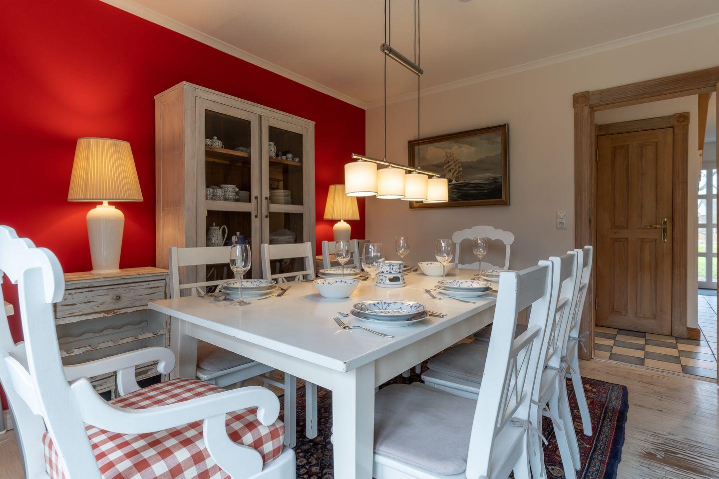 Das Einzelhaus unter Reet steht auf einem 900 qm großen wunderschönen Grundstück. Helles freundliches Ambiente auf ca. 120 qm Wohnfläche im Ortsteil Dorf laden zur Entspannung ein. Im "Lüttje Haubarg" gibt es einen Wohn-/Essraum mit Kaminofen, eine separate Küche mit Geschirrspüler und Waschmaschine, 2 Bäder (einmal mit Dusche, einmal mit Badewanne) und 2 zusätzliche Gäste-WCs.