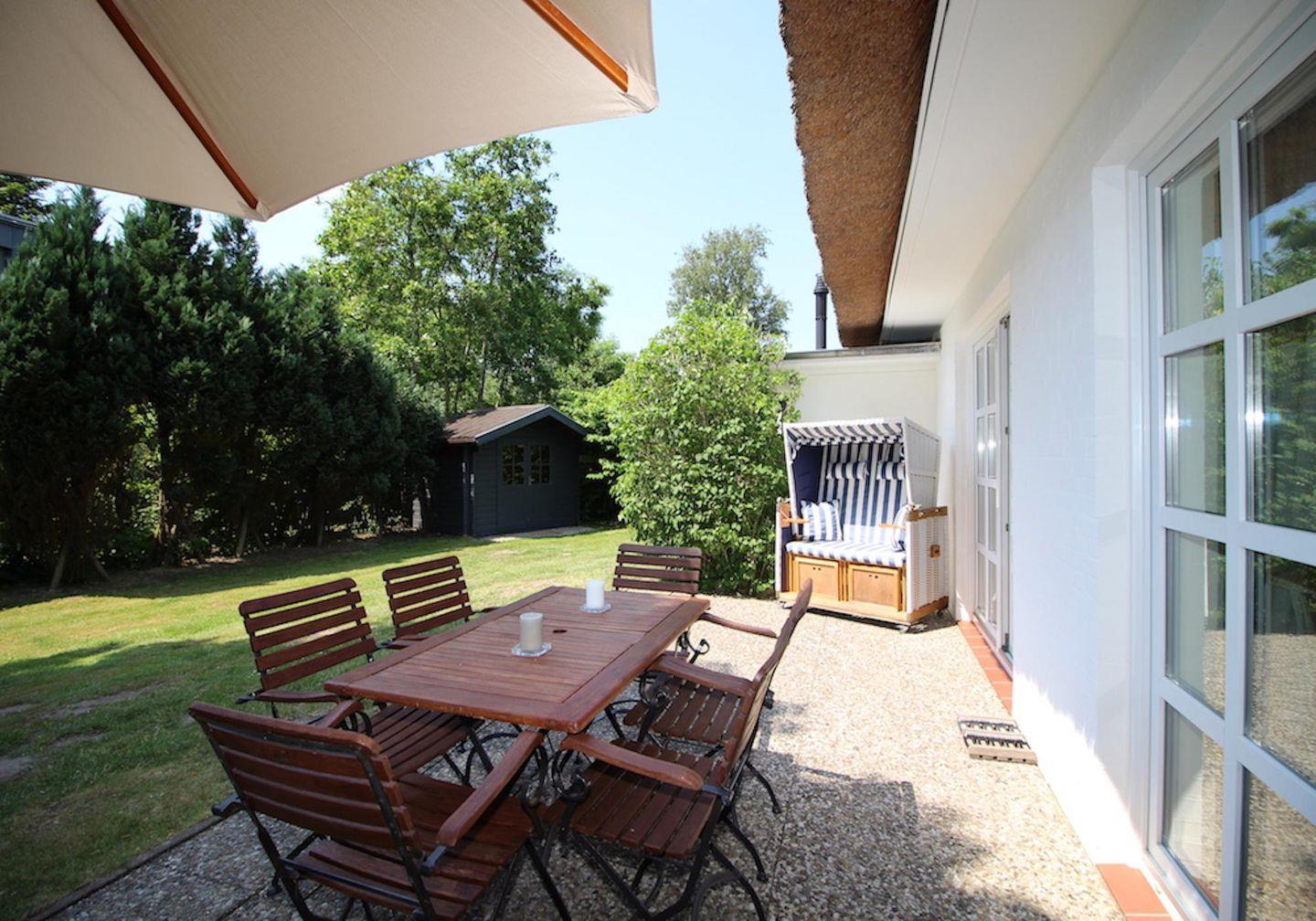 Im großen Garten (900 qm) und auf der Terrasse mit Strandkorb und Gartenmöbeln können Sie Ihren Urlaub genießen.