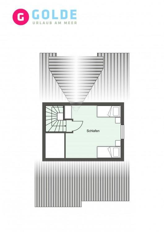 Über eine weitere Holztreppe geht es vom Flur ins Dachgeschoss mit einem weiteren Zimmer mit 2 Einzelbetten.