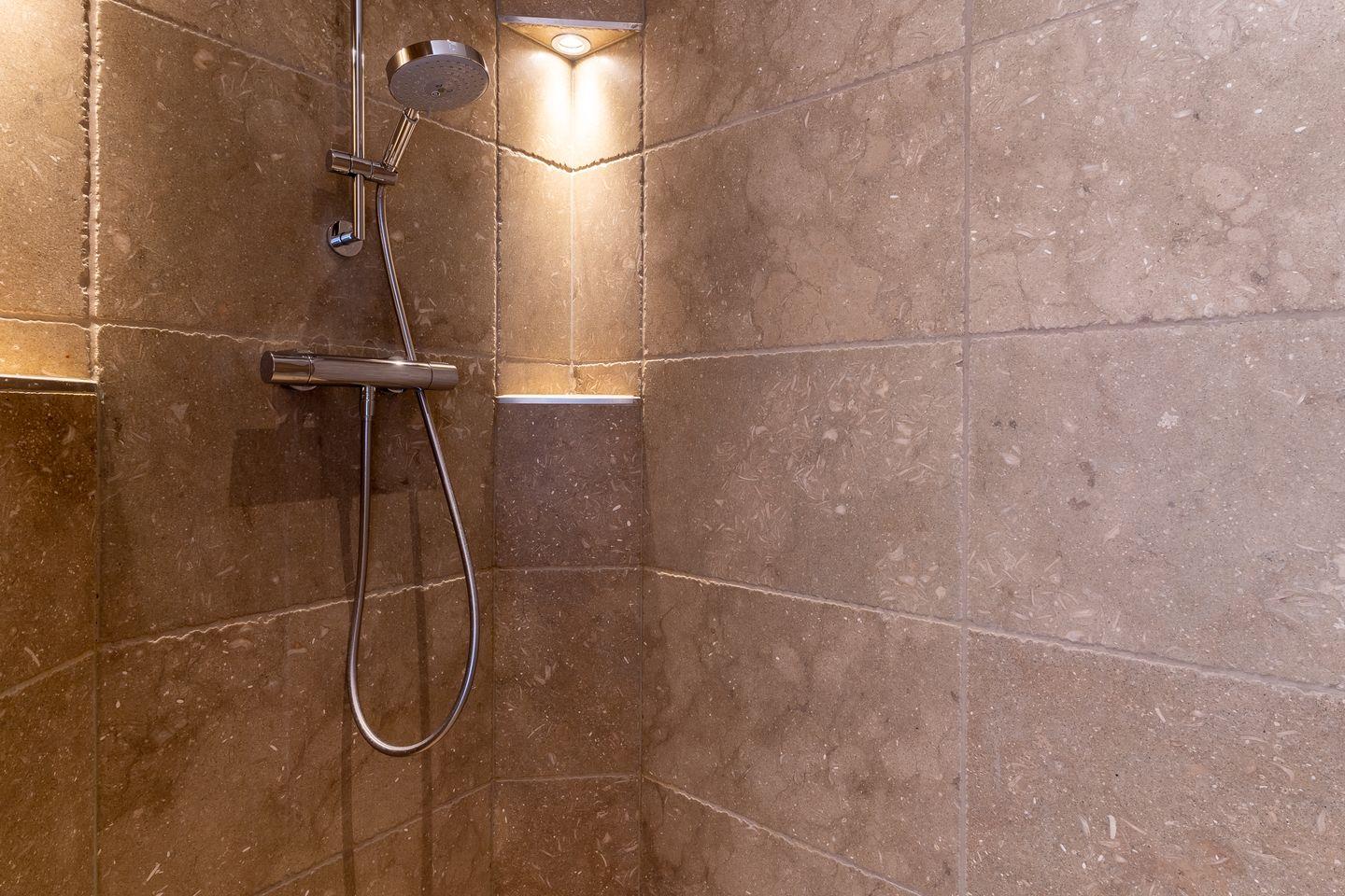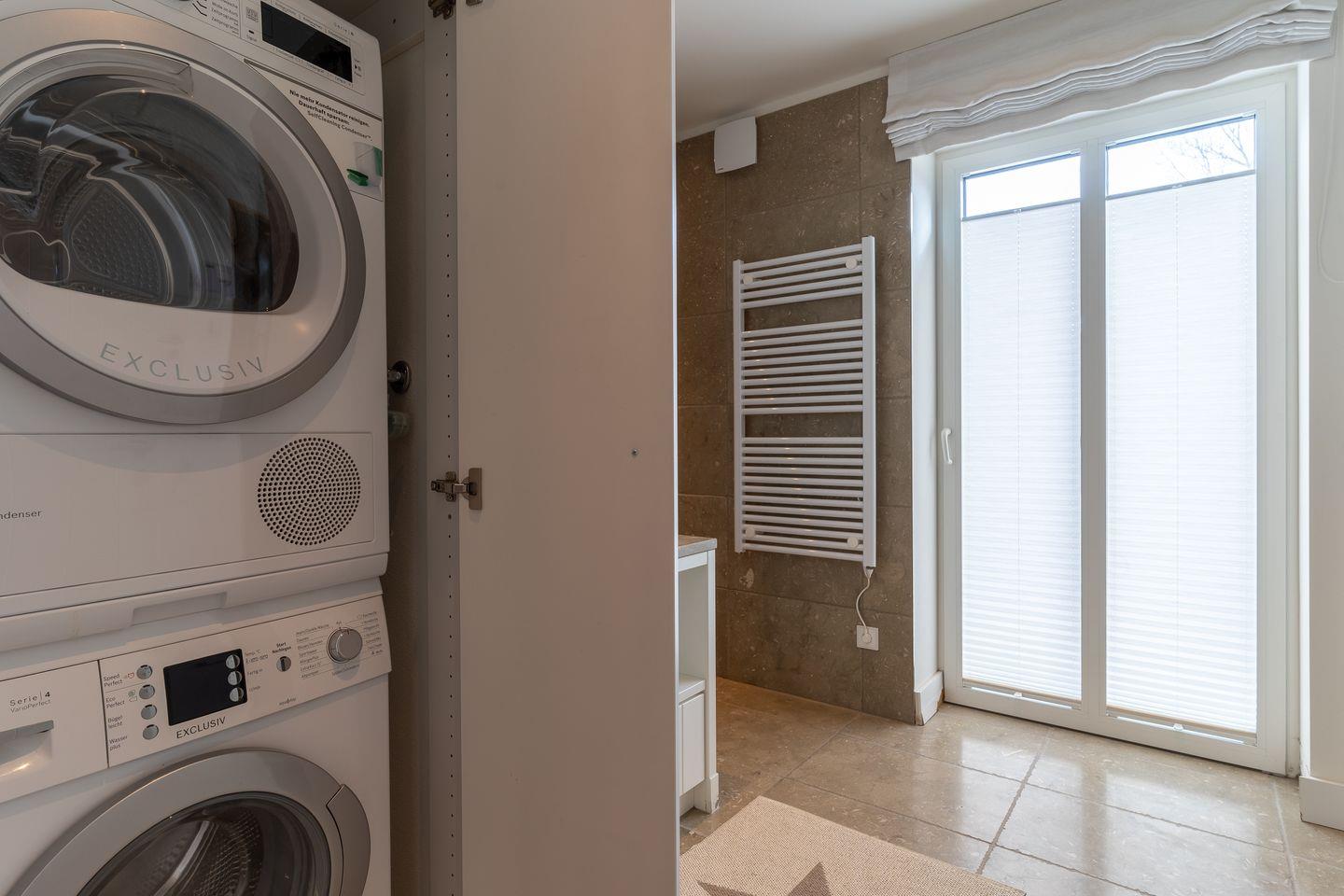 Im Erdgeschoss befindet sich der lichtdurchflutete Wohnraum mit einer offenen Küche, einem Gaskamin und einem gemütlichen Essbereich. Die Küche ist mit hochwertigen Geräten voll ausgestattet. Ein edler Kamin im Wohnraum bietet einen warmen Charakter. Im Erdgeschoss ist ebenso ein großer Flur mit eingebauter Garderobe, ein Hauswirtschaftsraum und ein großzügiges Gästebad. Außerdem ein Duschbad mit einer großzügigen Sauna. Die Sauna ist mit entspannter Hintergrundmusik, Beleuchtung und jeglichem Komfort.