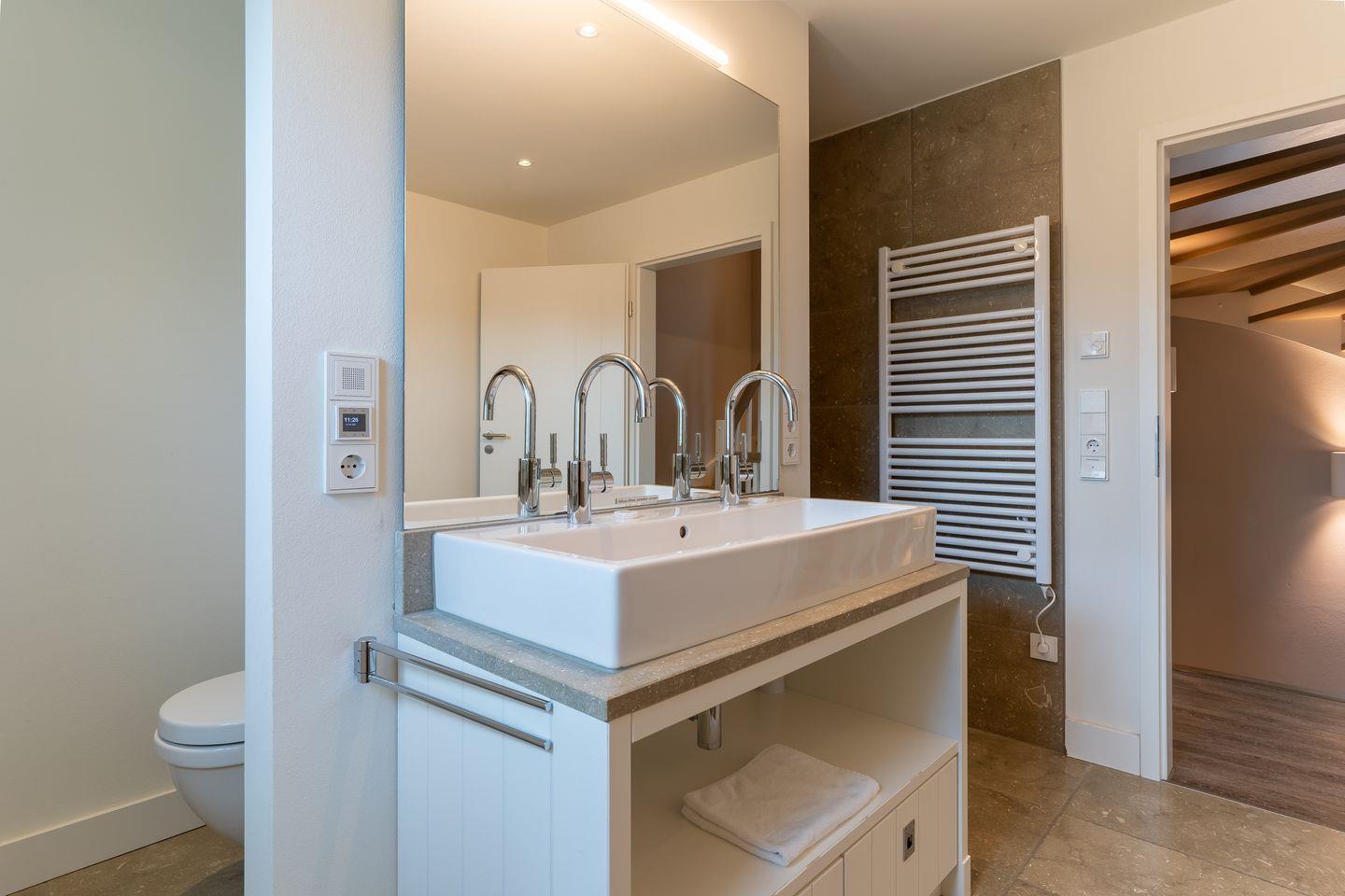Über eine Holztreppe gelangt man in das Obergeschoss mit zwei großzügigen Schlafzimmern, ein Doppelschlafzimmer mit TV und großem Einbauschrank und ein Dreibettzimmer mit einem Einzelbett, sowie 2 weiteren Einzelbetten, diese können jedoch mit einem Klick zu einem Doppelbett umgewandelt werden. Durchdacht bis ins letzte Detail. Im OG ist außerdem noch ein 3. Bad - ein Vollbad mit Dusche und Badewanne.