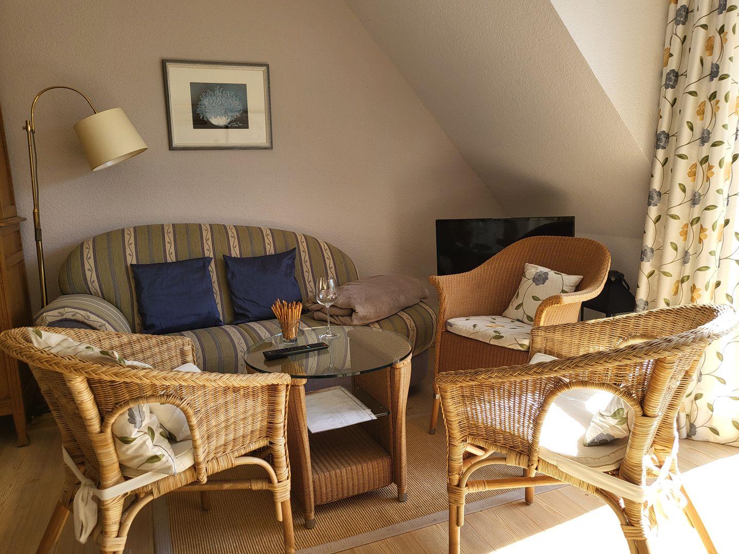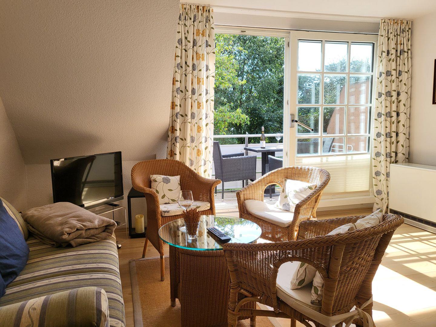 Helle 3-Zimmer Ferienwohnung in St. Peter-Ording Dorf mit Balkon, WLAN und PKW-Stellplatz für entspannte Urlaubstage.