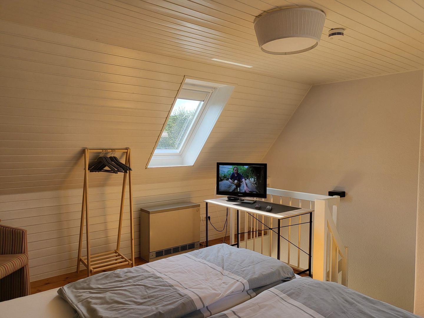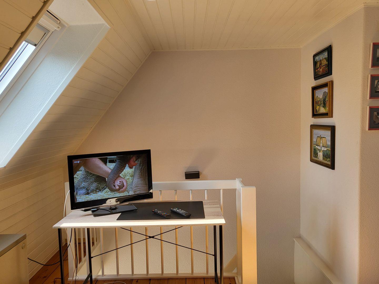 Im Dachgeschoss steht ein 180x200cm Doppelbett sowie ein weiterer Flachbild-TV zur Verfügung.