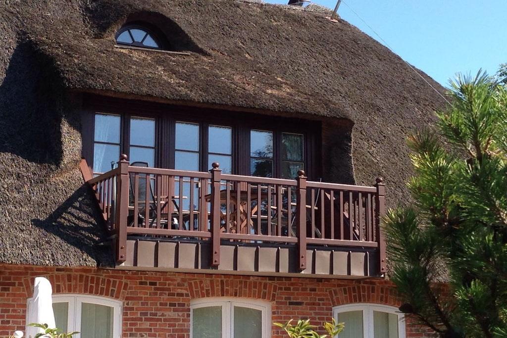 Moderne Ferienwohnung mit Südbalkon und Smart TV im historischen Reethaus Bi de Kark in St. Peter-Ording.