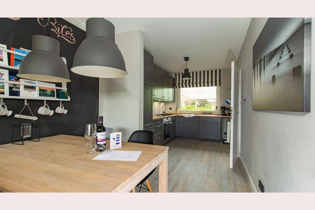 (Watten)panorama genießen! Unter Reet befindet sich dieses neu renovierte Ferienhaus über zwei Etagen direkt an den Dünen. Geschmackvoll und modern eingerichtet, bietet es mit der komplett ausgestatteten Küche und zwei Schlafzimmern, je eins mit Doppel- und Tandembett, Platz für die ganze Familie. Von dem einen Schlafzimmer kann man den Blick auf das Meer und die Dünen genießen. Mit schönen italienischen Fliesen sind das Duschbad im Obergeschoss und das Gäste-WC im Erdgeschoss ausgestattet. Vom großzügigen Wohnzimmer mit Essbereich hat man direkten Zugang zur möblierten Terrasse, wo man einen spannenden Urlaubstag ausklingen lassen kann.