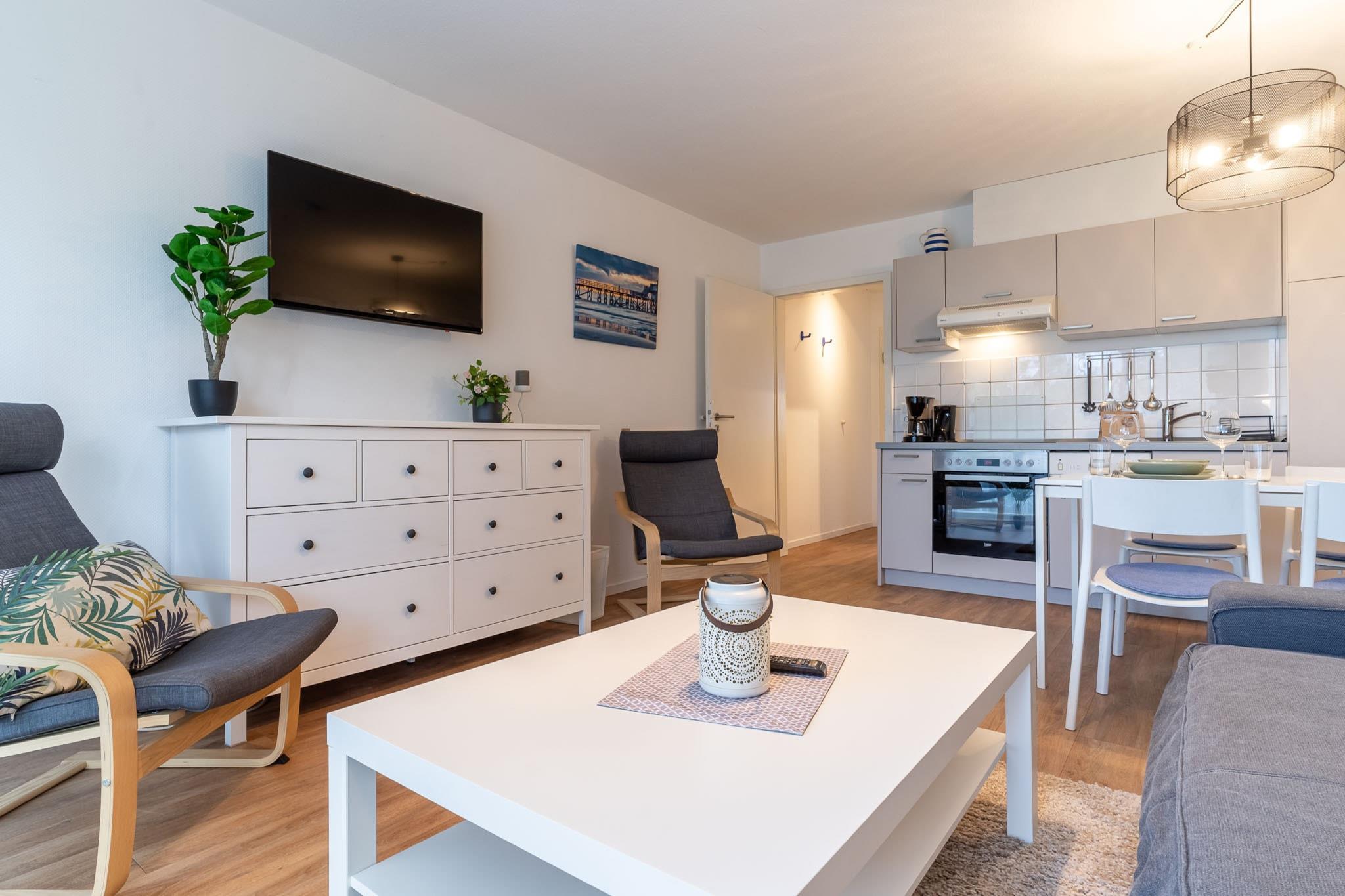 Charmantes Apartment nahe dem Strand von St. Peter-Ording, ideal für Wassersport und Erholung.