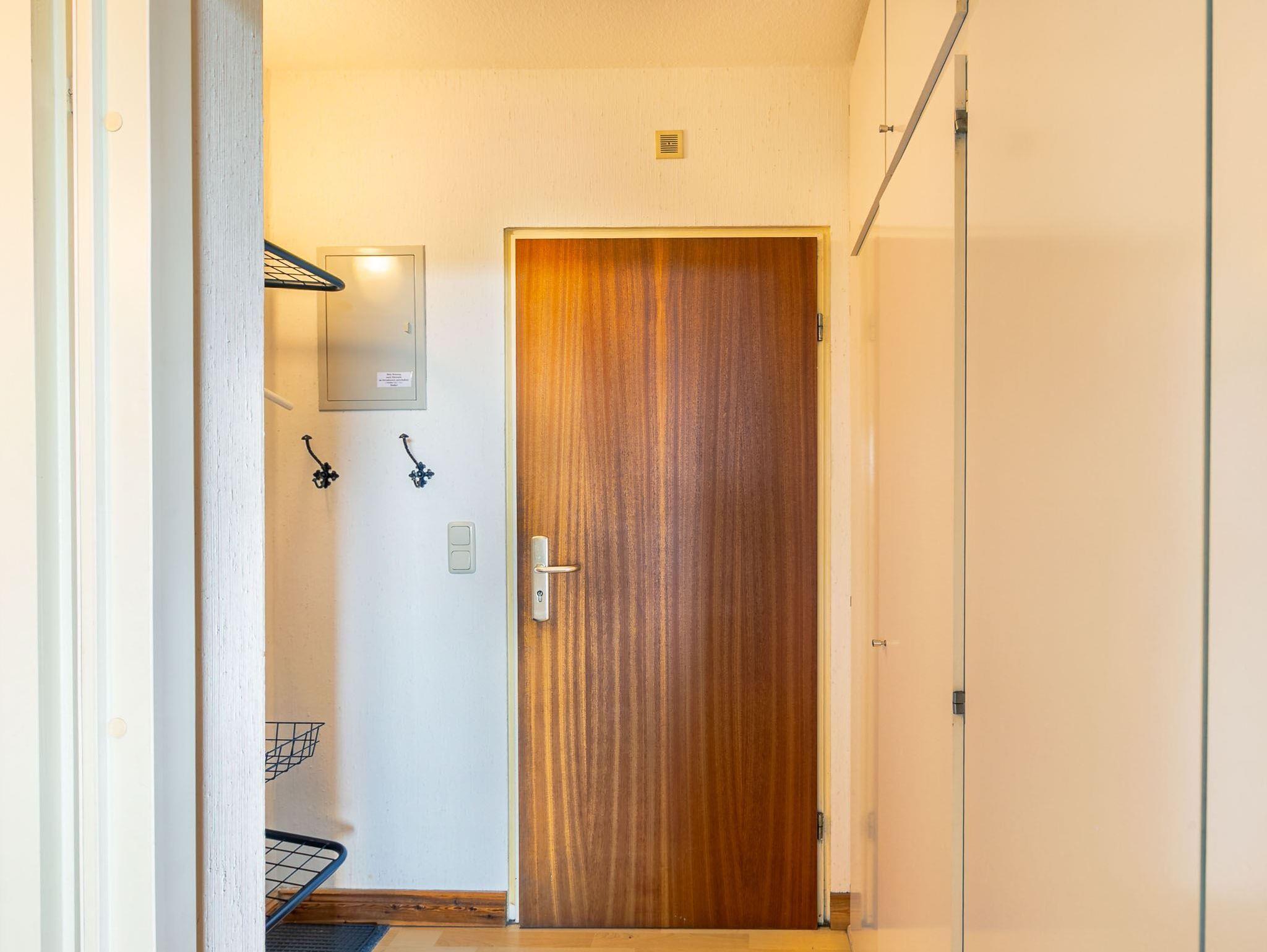Flur mit Garderobe, Spiegel und Einbauschrank im Eingangsbereich.