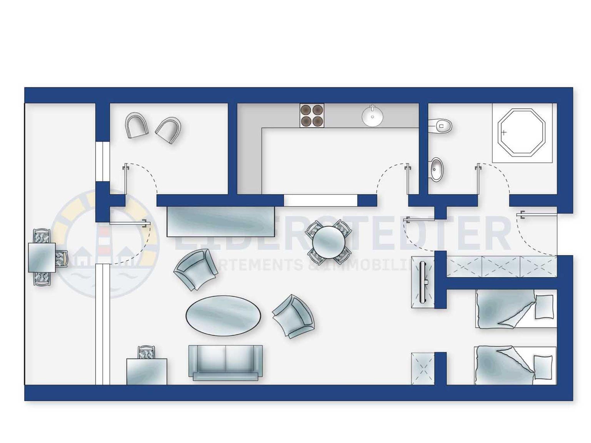 Gemütliche 2,5-Zimmer-Ferienwohnung mit Meerblick in St. Peter-Ording, ideal für einen erholsamen Urlaub.