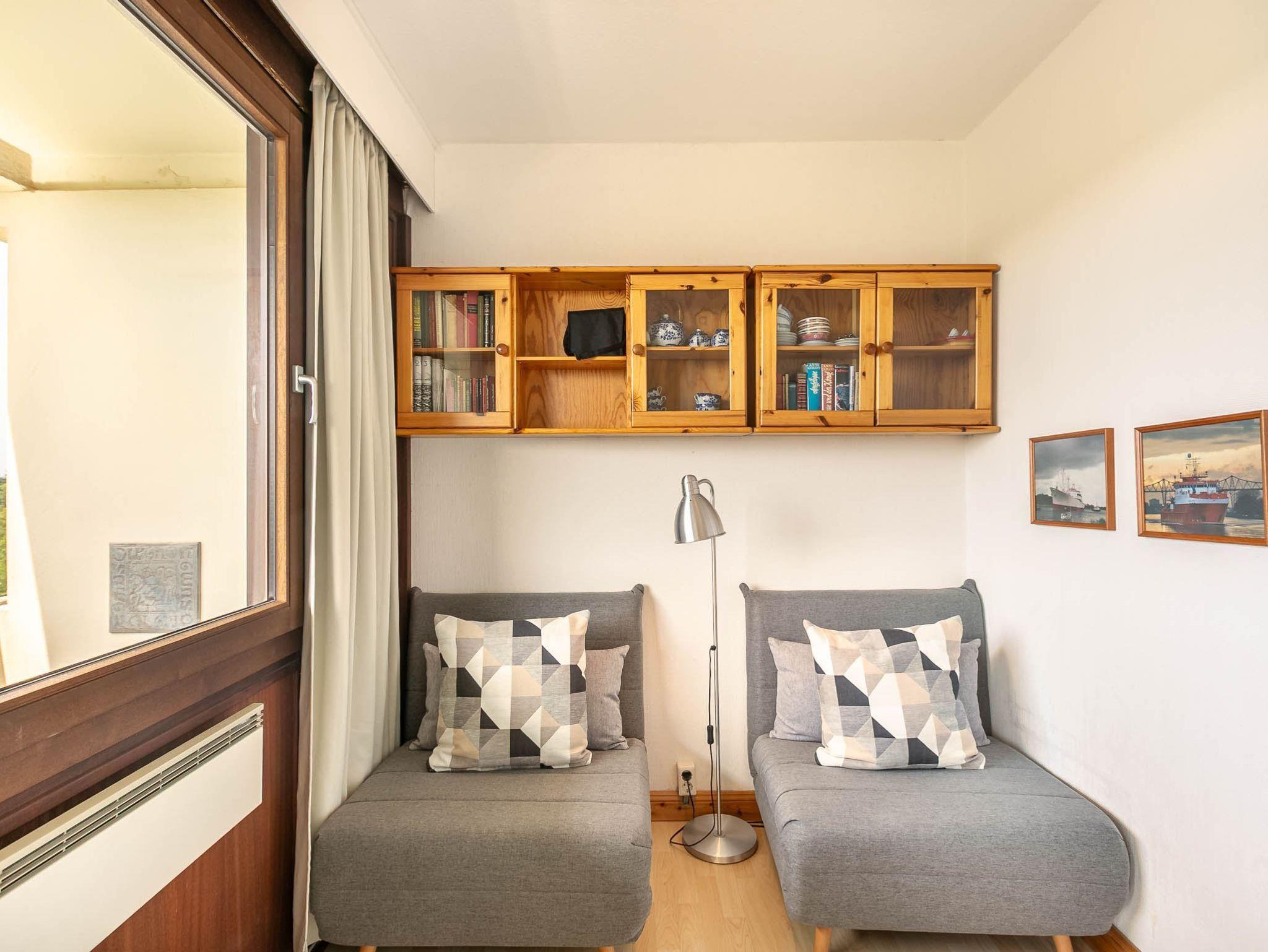 Kinderschlafzimmer mit 2 Sesseln (ausziehbar, je 80x190cm) und Meerblick.