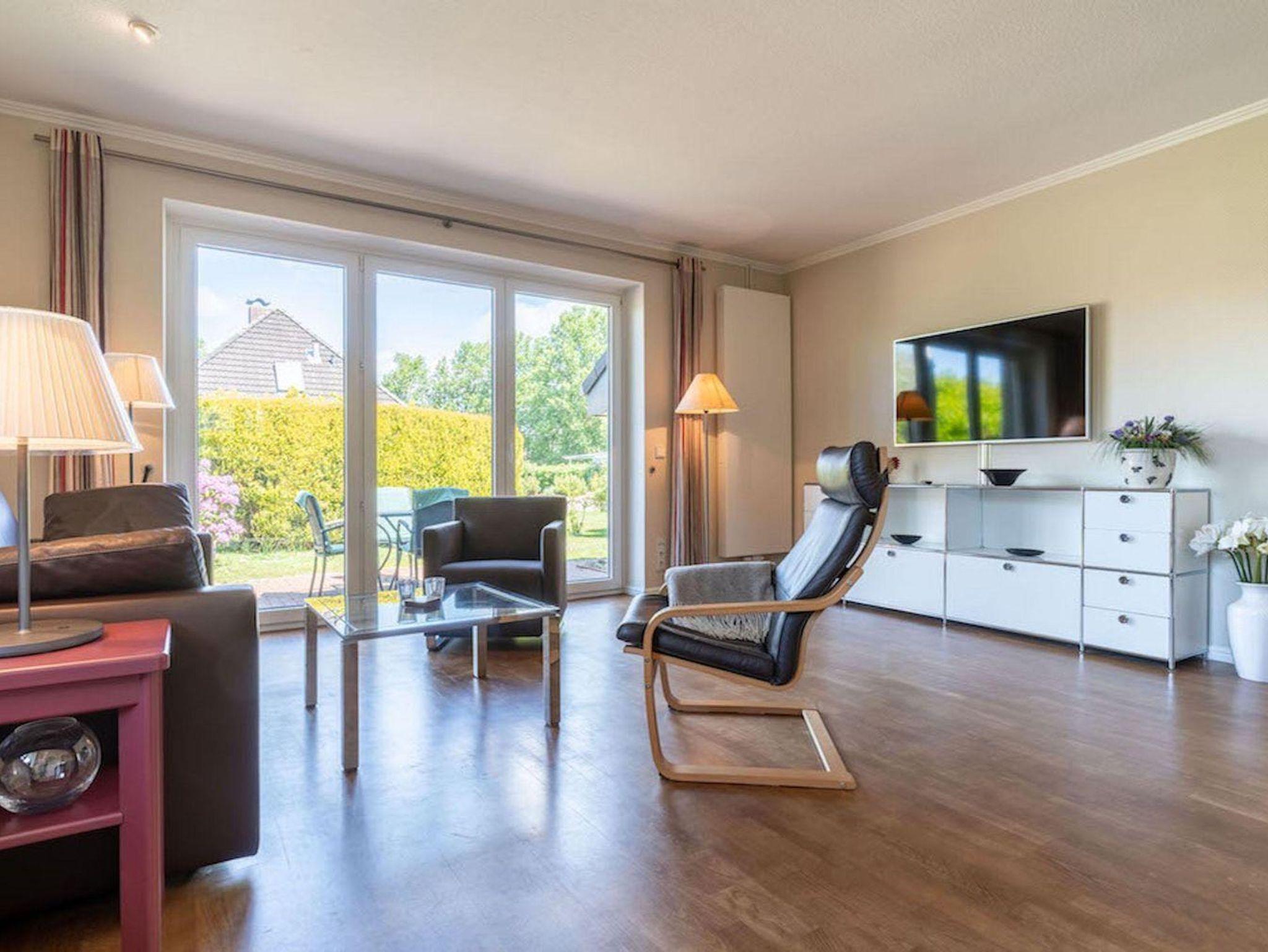 Der Bungalow liegt in einer ruhigen Sackgasse im Ortsteil Dorf. In wenigen Gehminuten ist man im alten Ortskern, in dem sich neben einem Supermarkt, Bäcker und diversen anderen Läden auch mehrere Restaurants und Cafes befinden. In die andere Richtung sind es nur wenige Minuten bis zu einem Einkaufszentrum mit Sky, Aldi und Lidl, wo sich auch die Bahnstation Bad St.Peter Süd befindet. Der Südstrand ist bequem und schnell mit dem Fahrrad oder dem Bus zu erreichen. Ganz in der Nähe ist ein kleiner Wald zum spazieren.