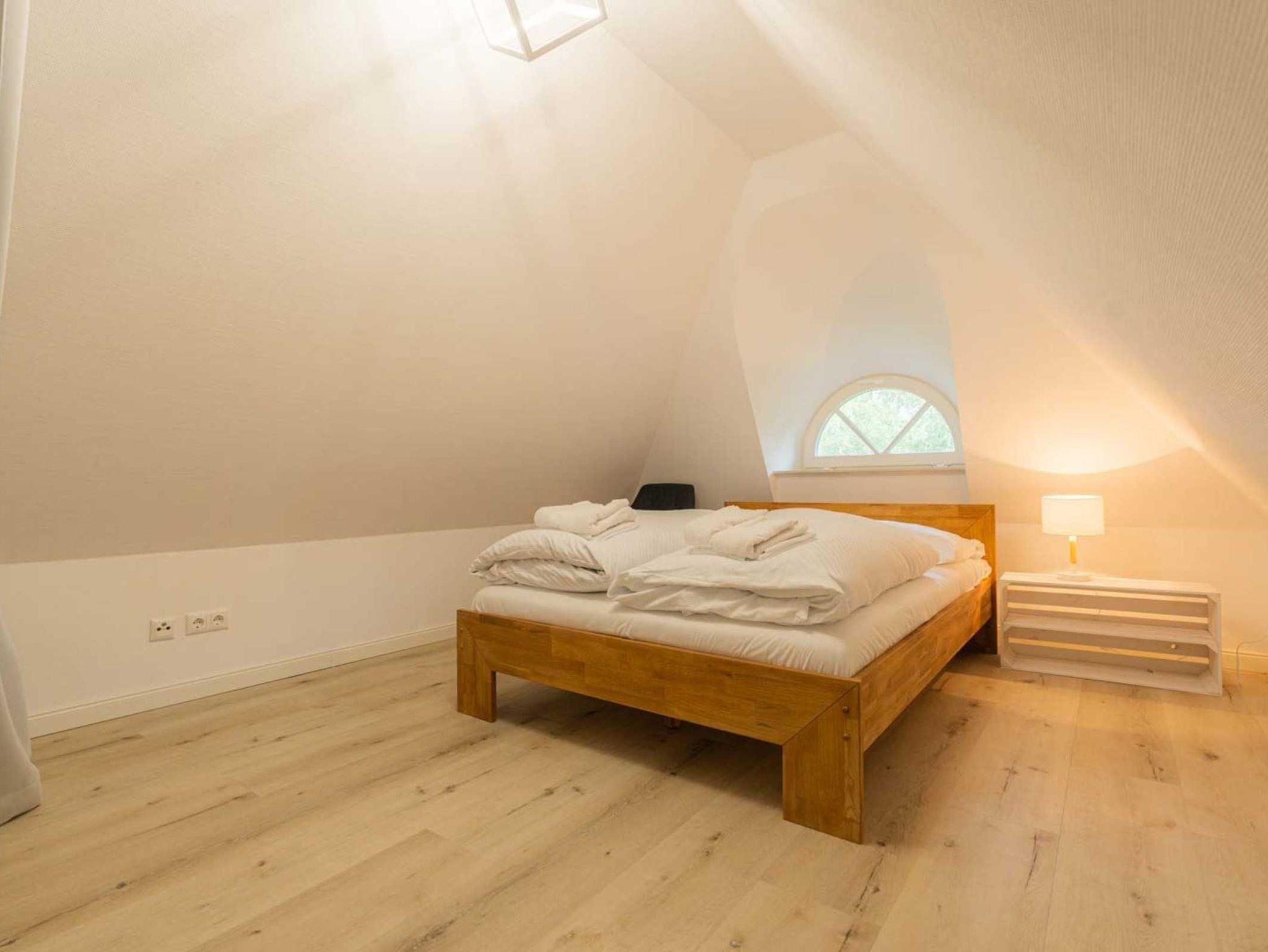 3. Schlafzimmer (Galerie, halboffen zum Treppenflur) mit franz. Doppelbett (140x200cm).