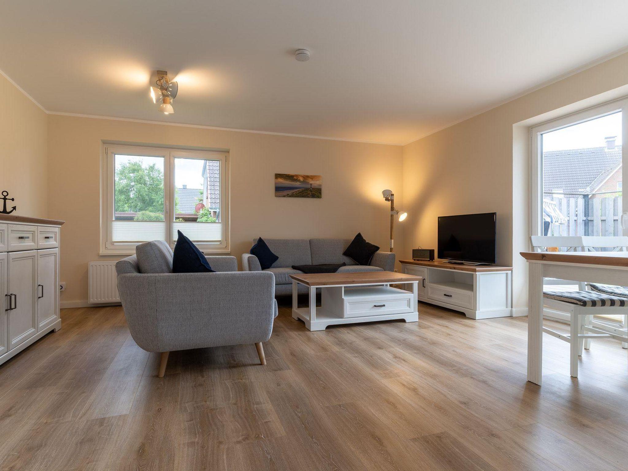 Geschmackvoll eingerichtetes Ferienhaus in St. Peter-Ording, nahe Strand und Kinderspielplatz, ideal für Familien und Haustiere.