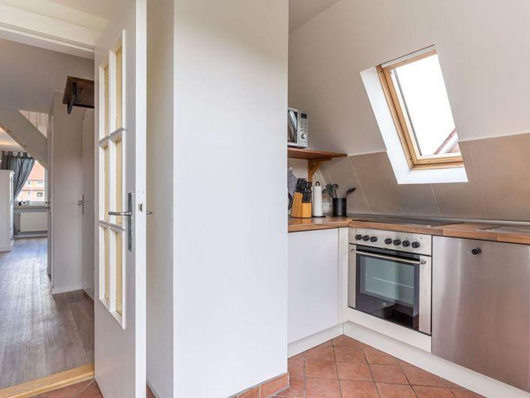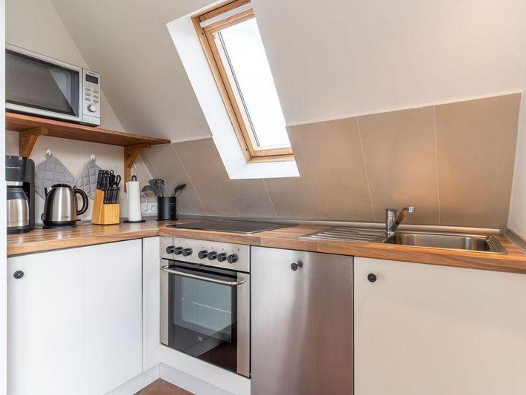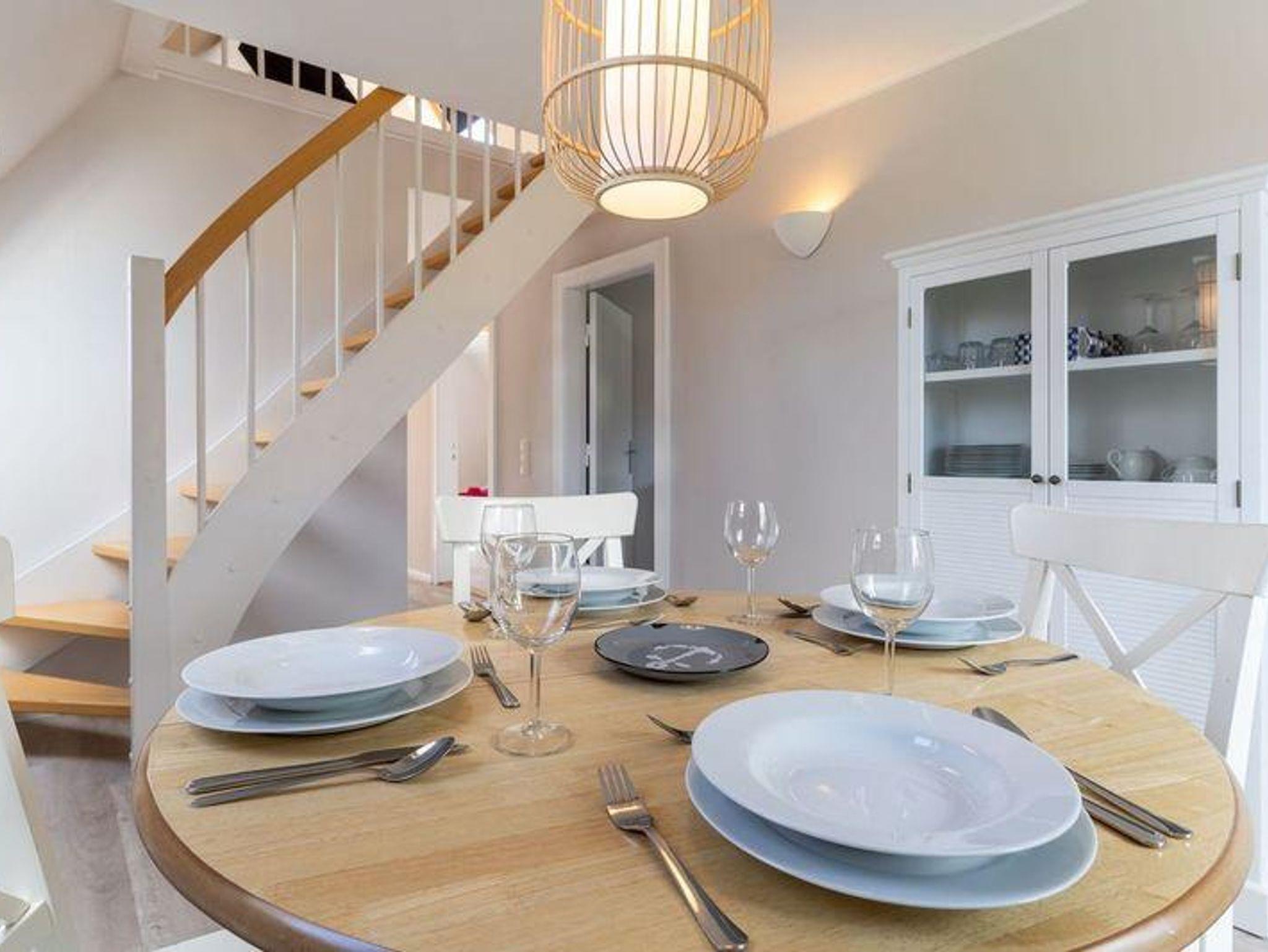 Über die volleingerichtete Küche erreichen Sie die große Dachterrasse, wo Sie sich sonnen können oder auch frühstücken. Falls der Wind mal zu stark bläst, kann man gemütlich im Esszimmer bei Musik seinen Kaffee oder Tee geniessen.