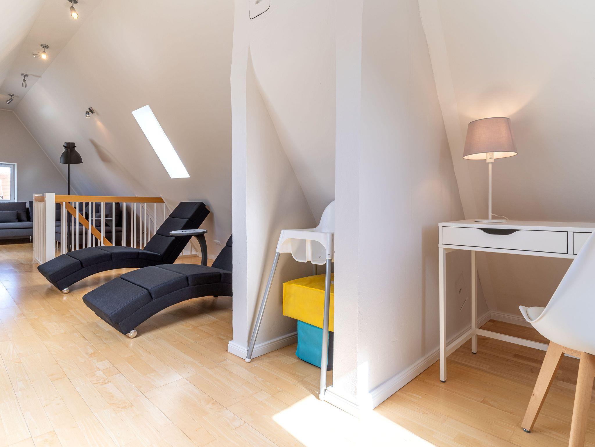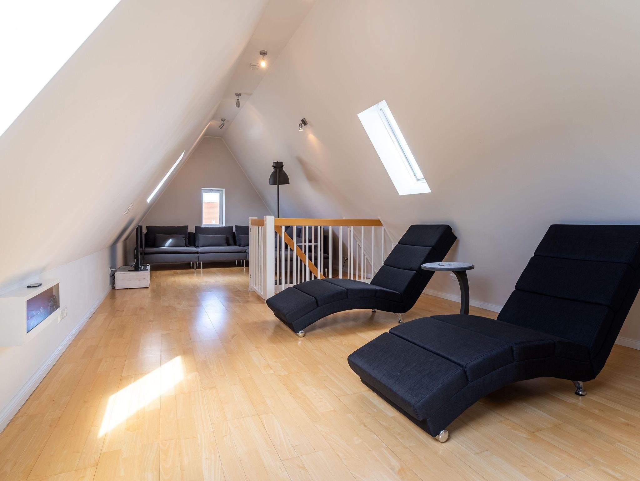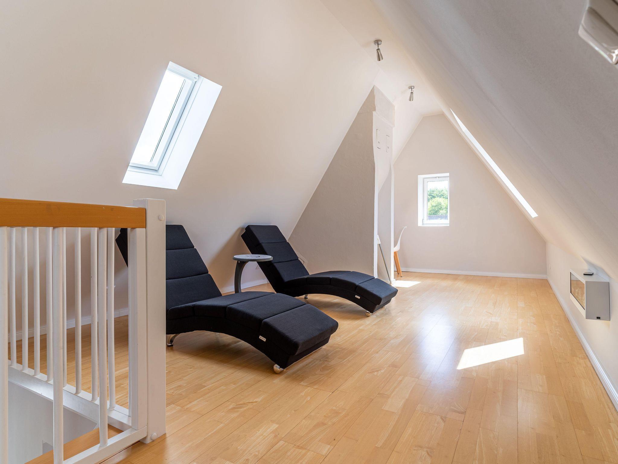 Unter dem Dach erwartet Sie der Wohnzimmerbereich. Ob Sie nun lesen, oder Homeoffice machen möchten oder auch nur Netflix oder Free TV gucken möchten, alles ist hier möglich.